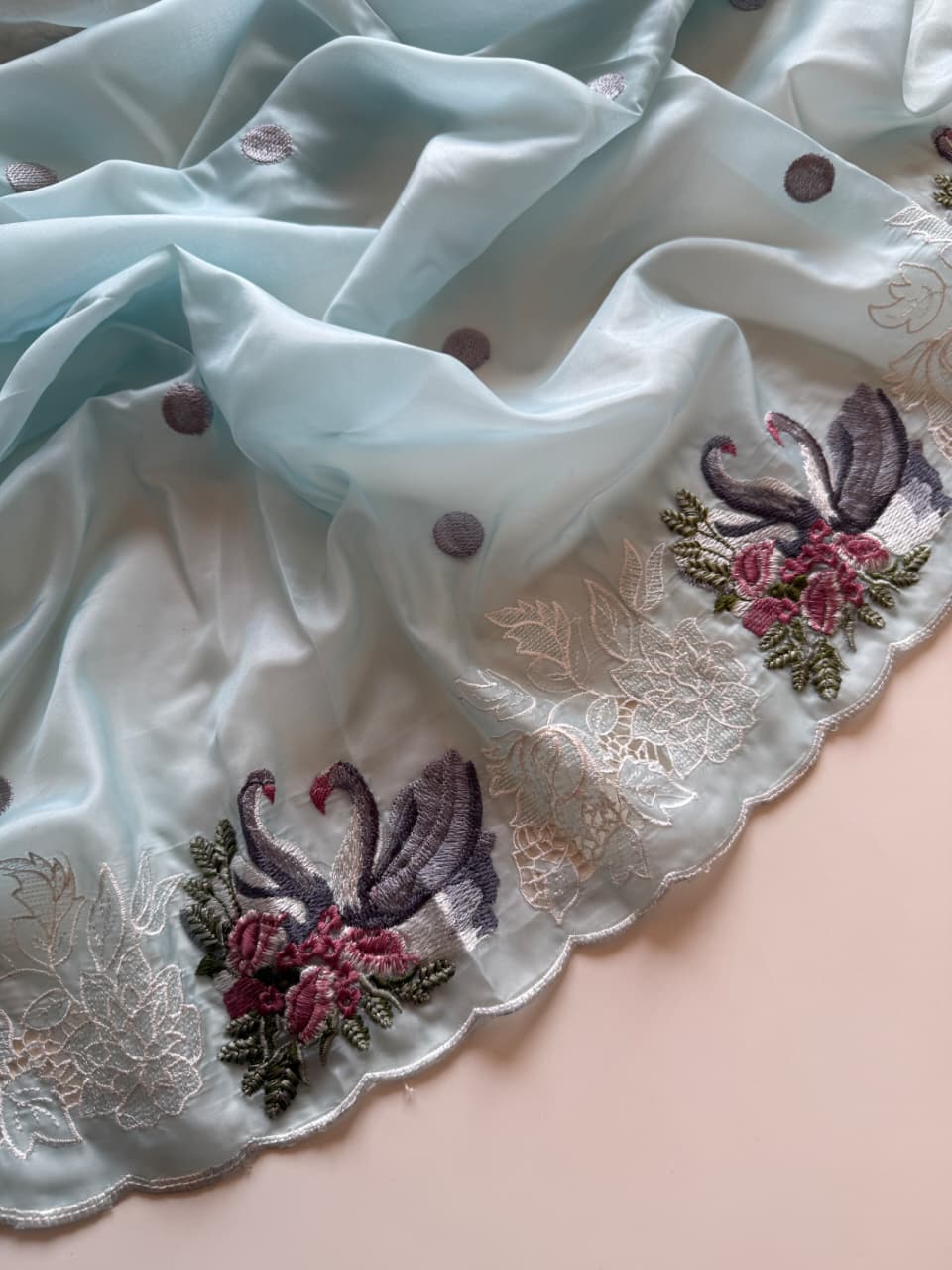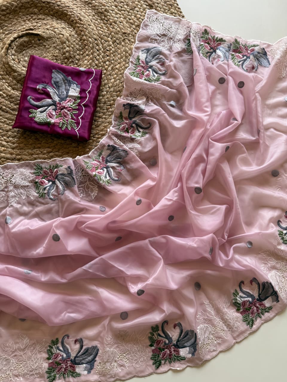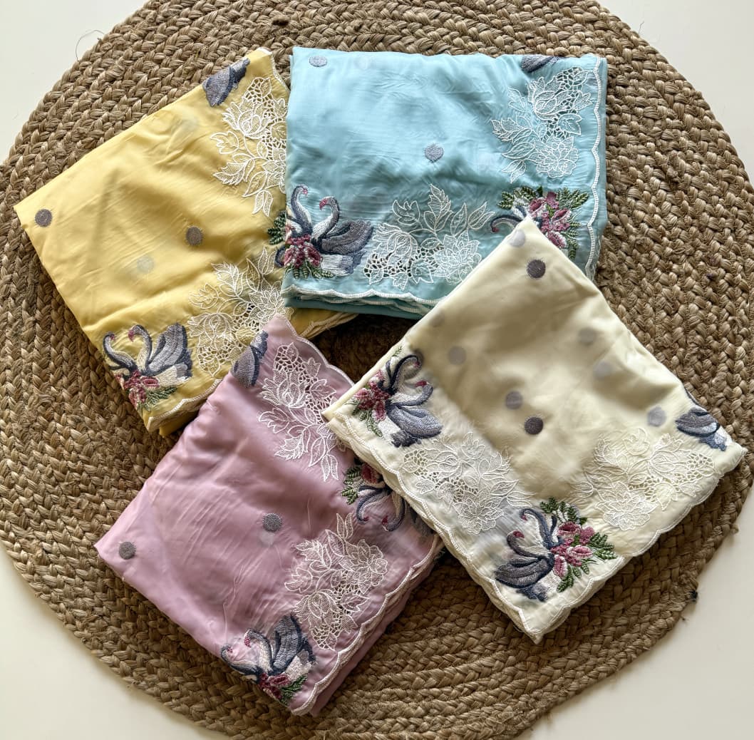 Organza is a fabric cultivated from organza silk. It’s one of the most stylish saris, perfect for summer.