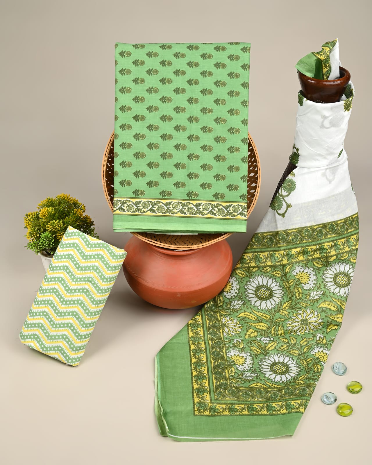| Fabric : | Pure Handblock Printed Jaipuri Suit With Cotton Dupta |