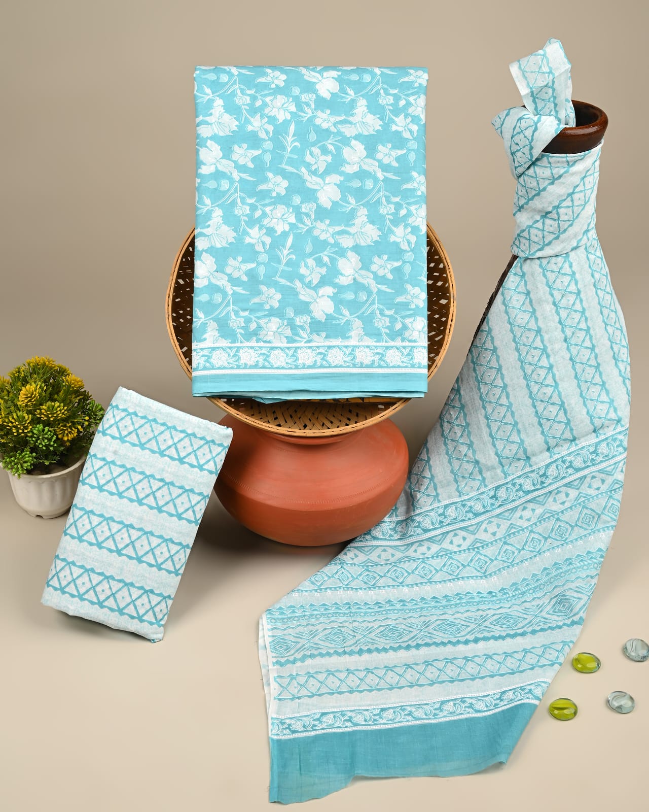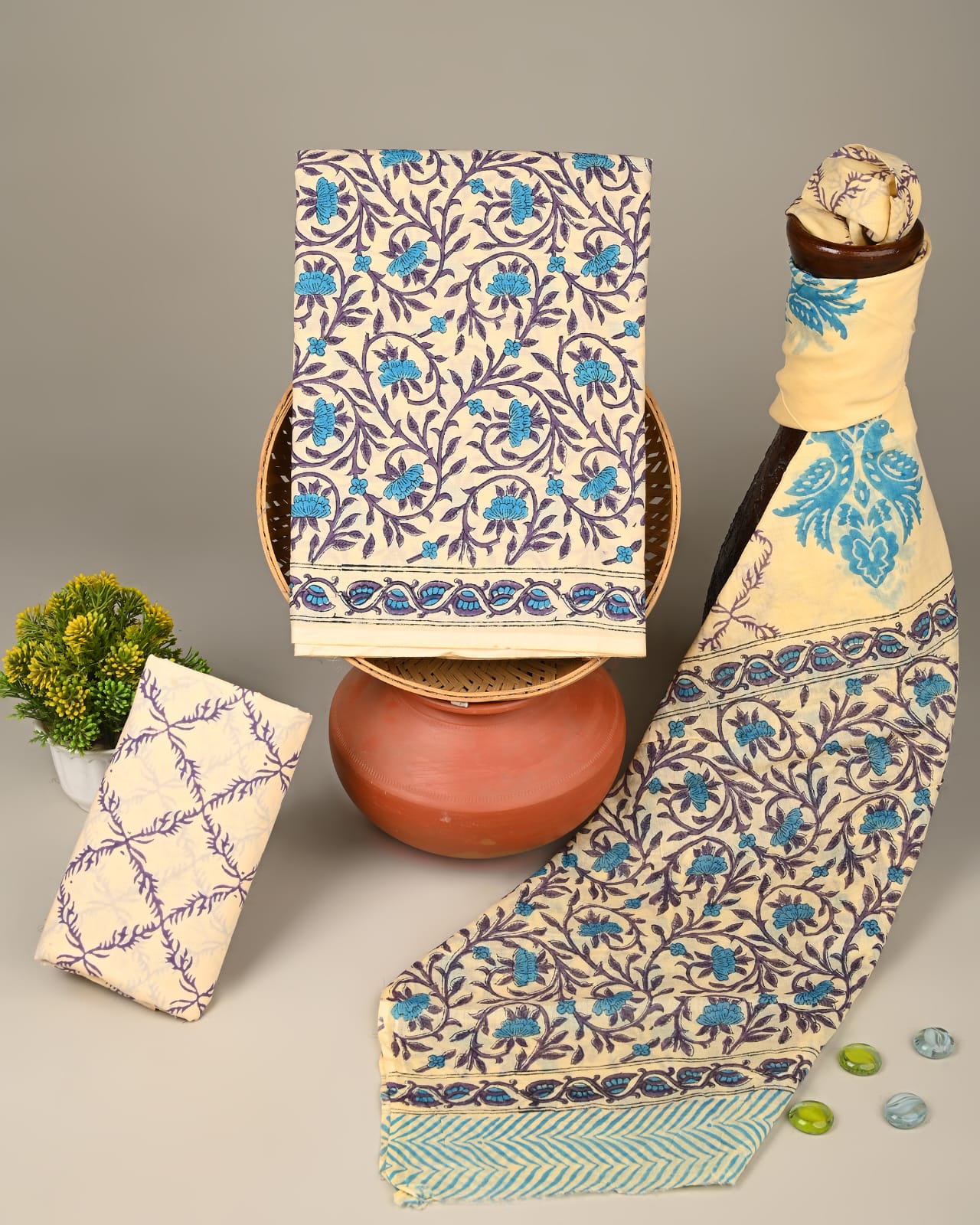 | Fabric : | Pure Handblock Printed Jaipuri Suit With Cotton Dupta |