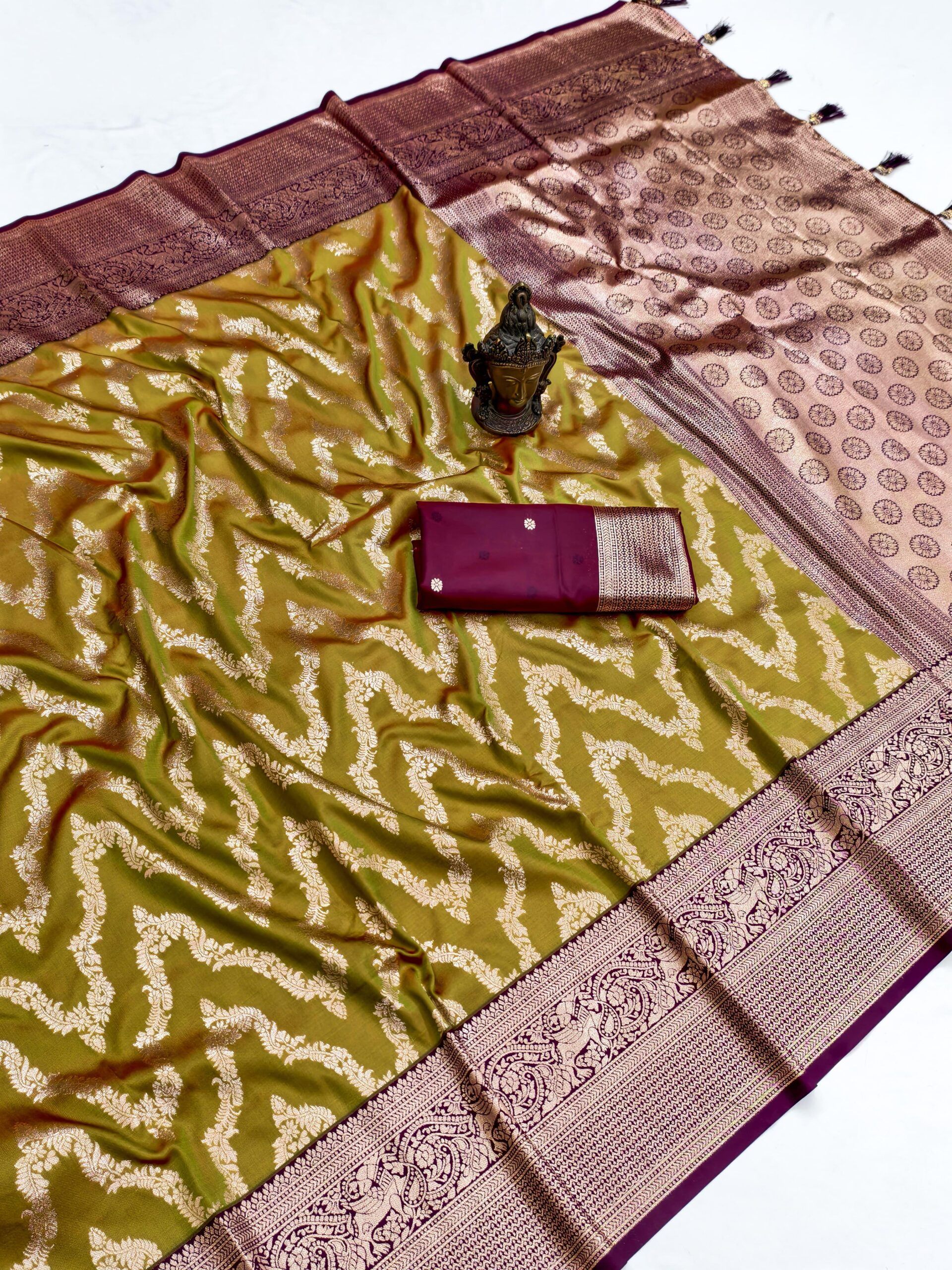 Fabric: pure heavy Banarasi silk Original gold jari Design