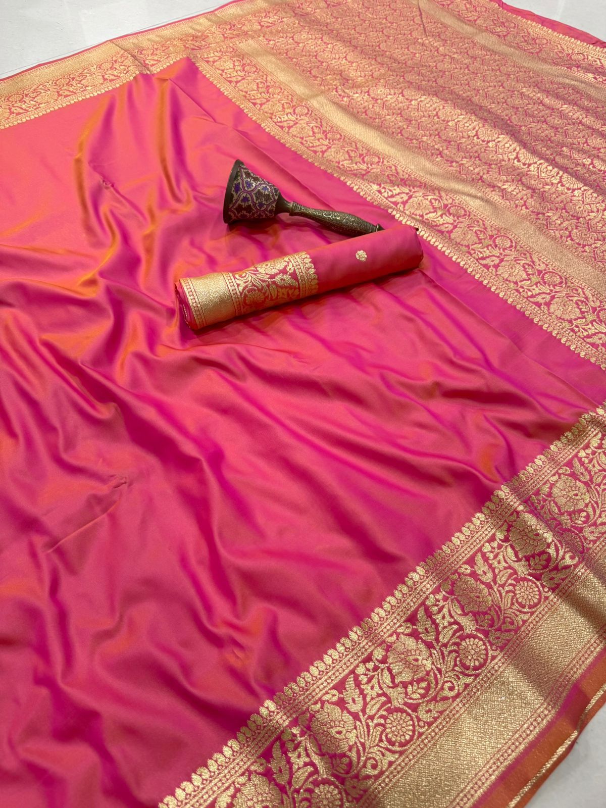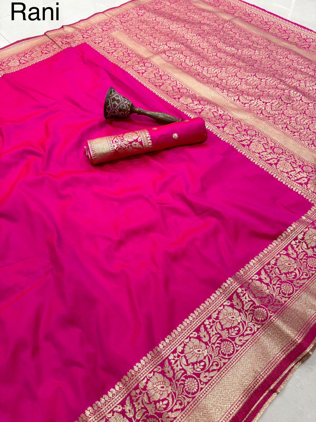 | Fabric: | pure heavy Banarasi silk Original gold jari Dijain n weaving pallu and boder |
