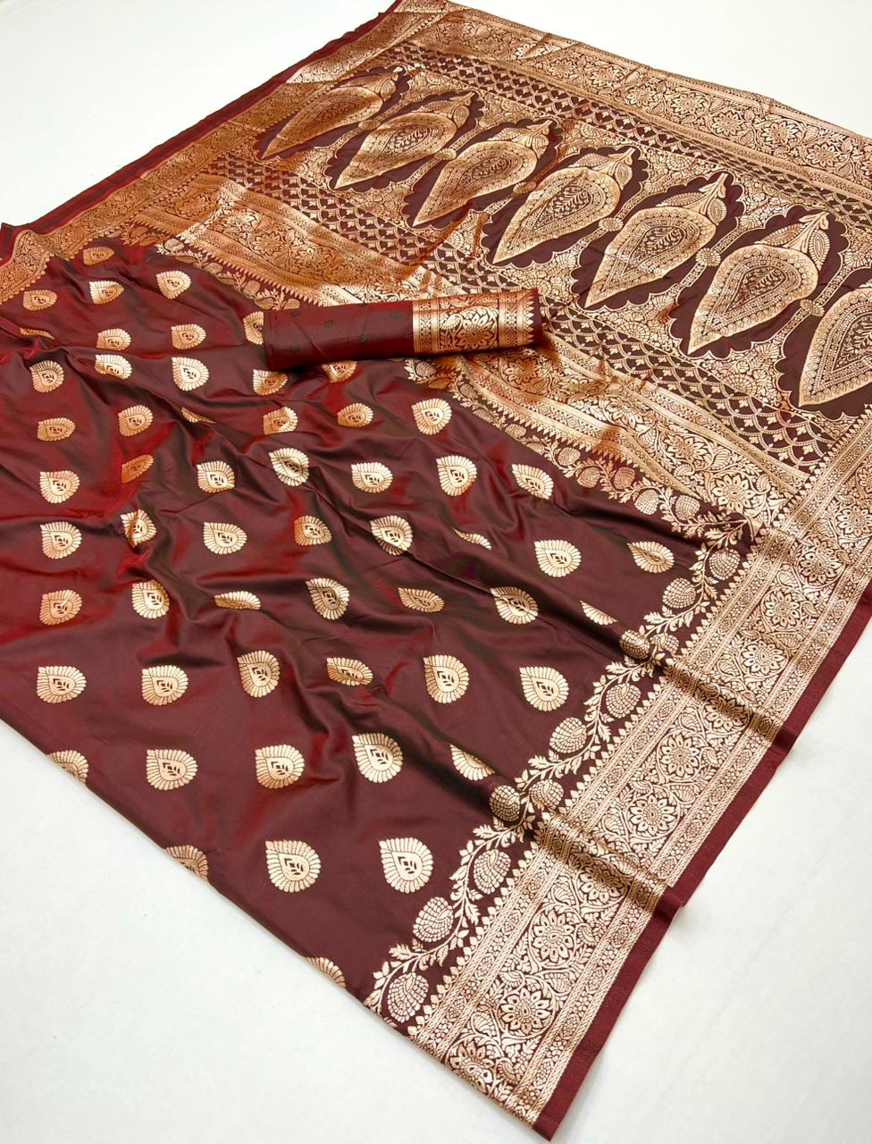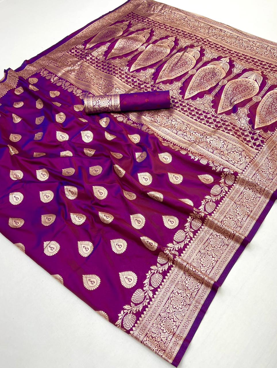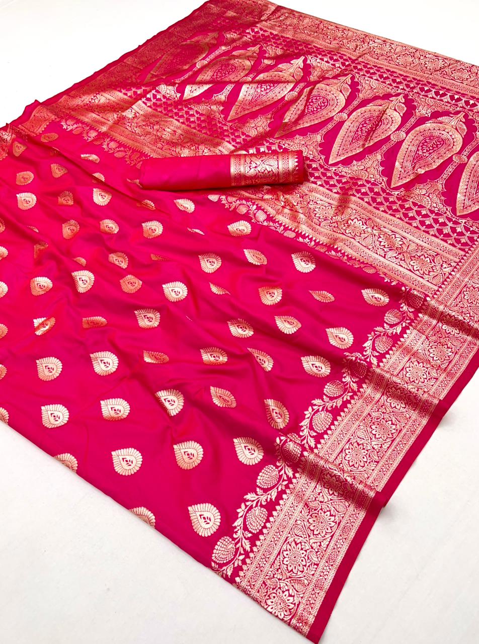 Name:  Pure Soft Banarasi Silk Saree With Zari Weaving Motifs