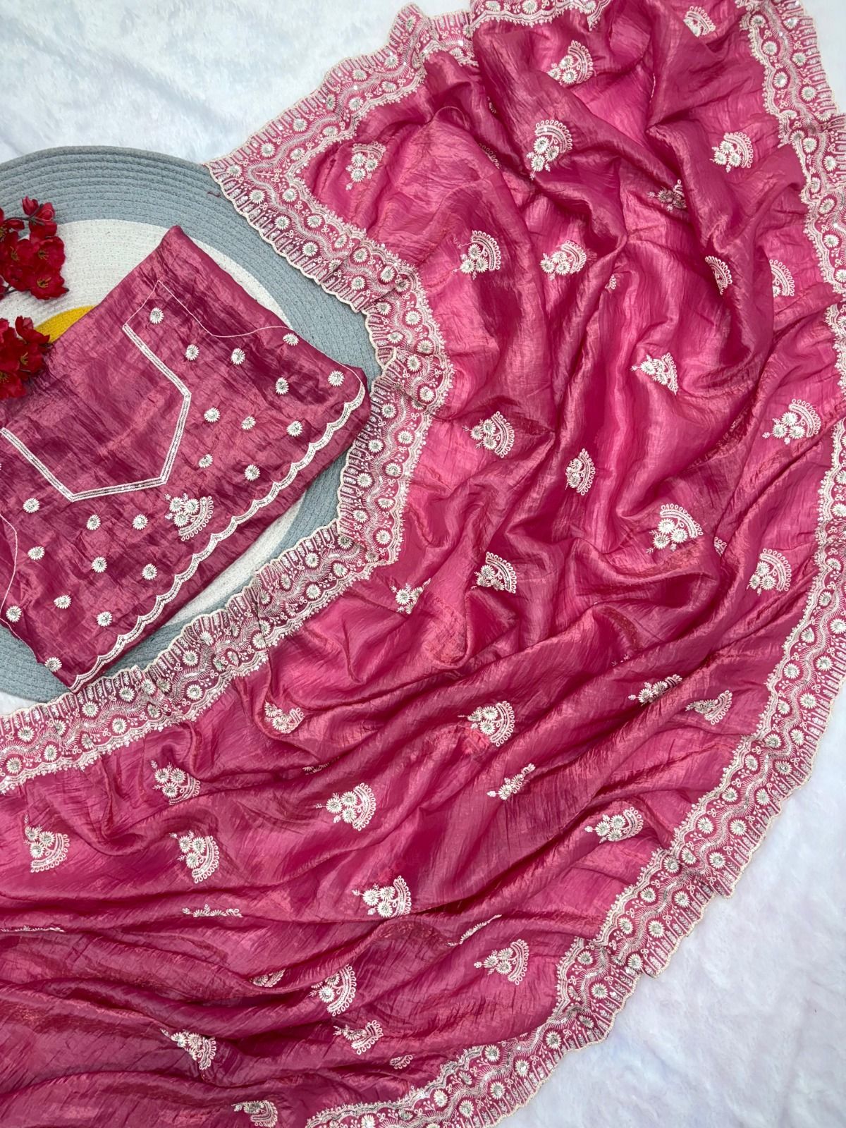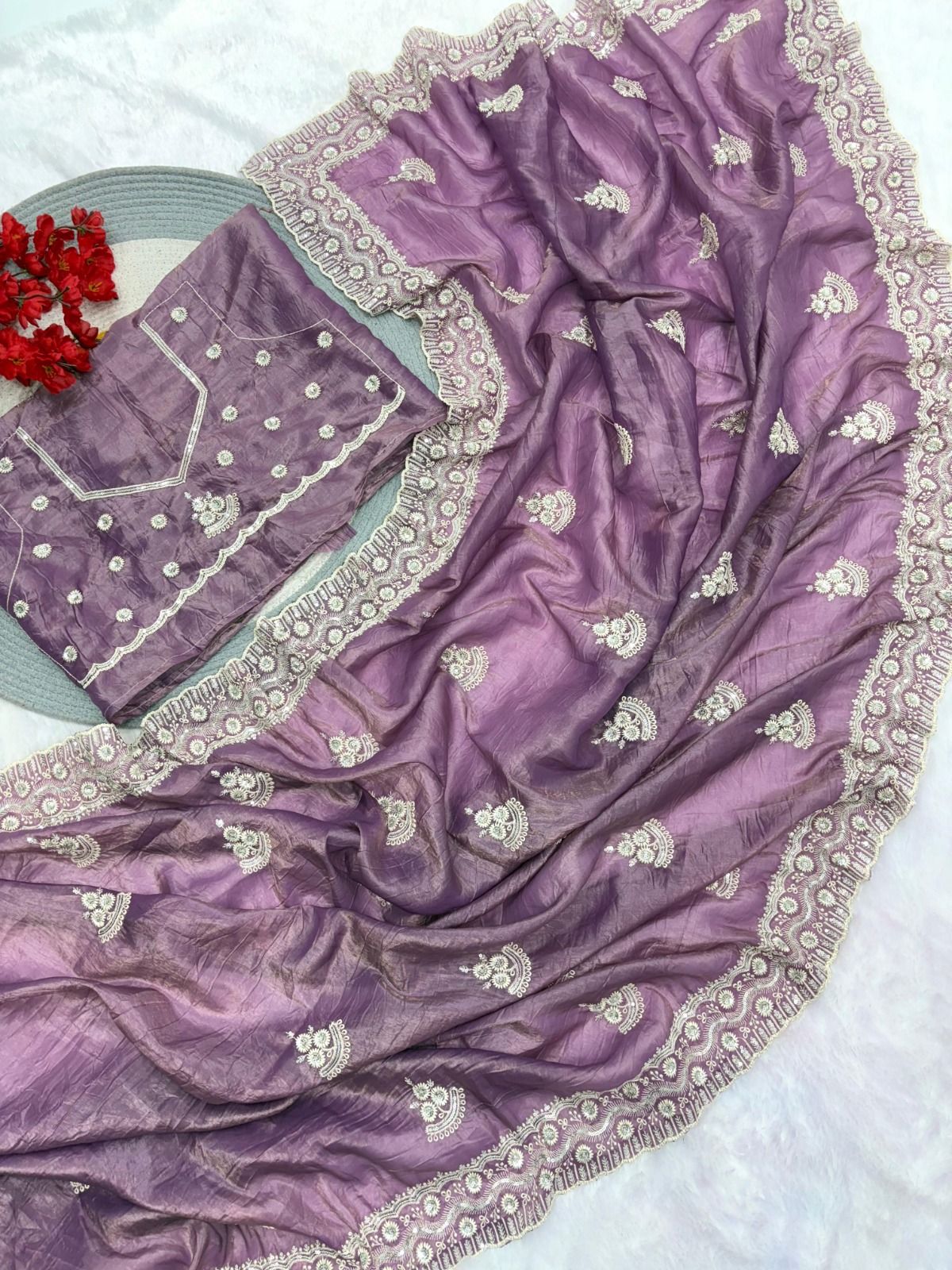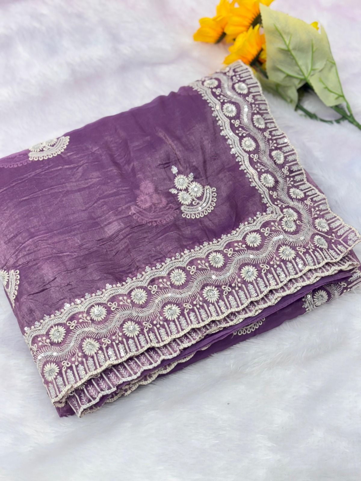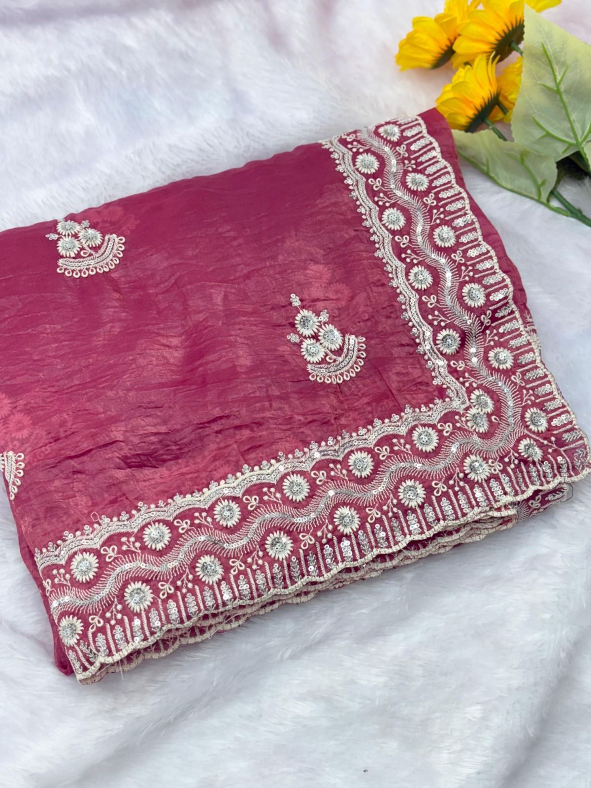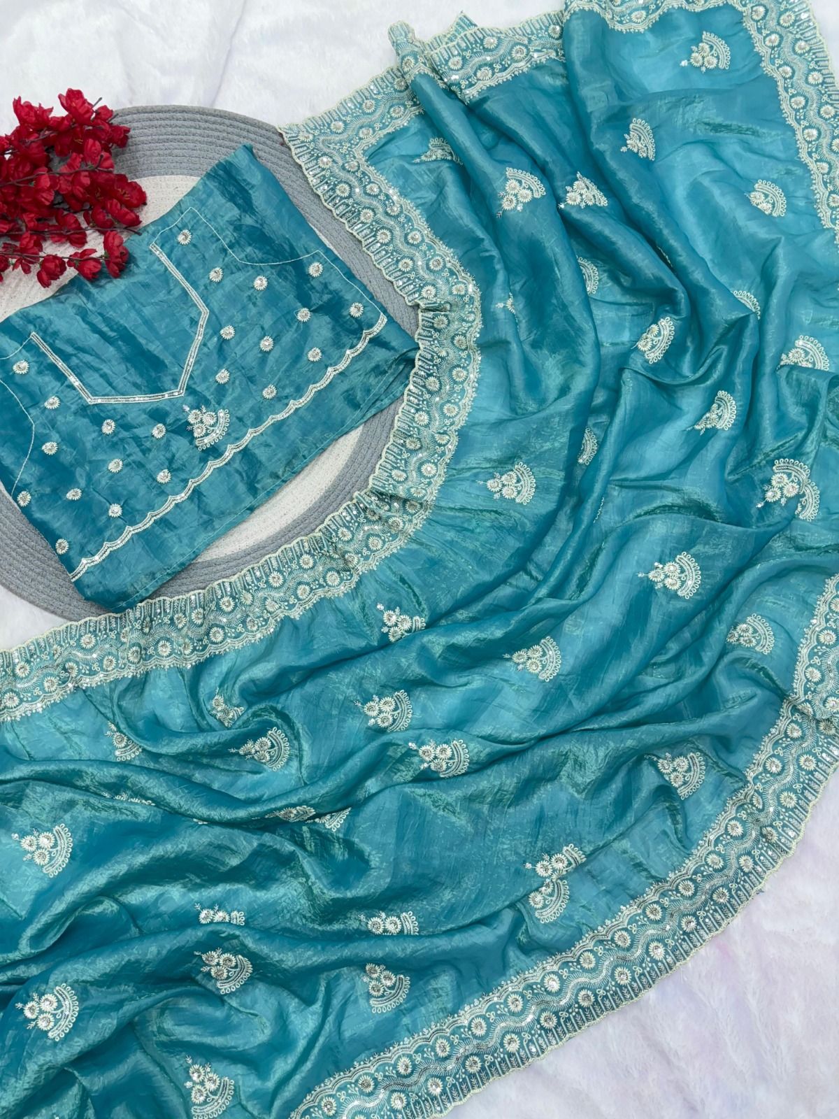 Fancy Space Silk Saree With Fancy Sequence Embroidery Work (6 Pc Set)