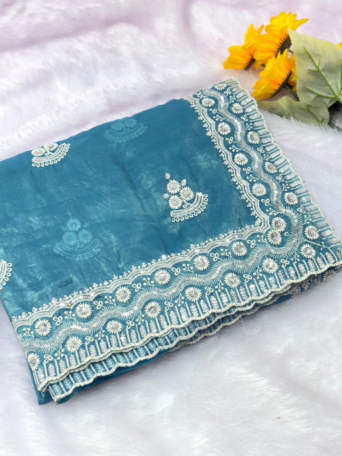 Organza is a fabric cultivated from organza silk. It’s one of the most stylish saris, perfect for summer.