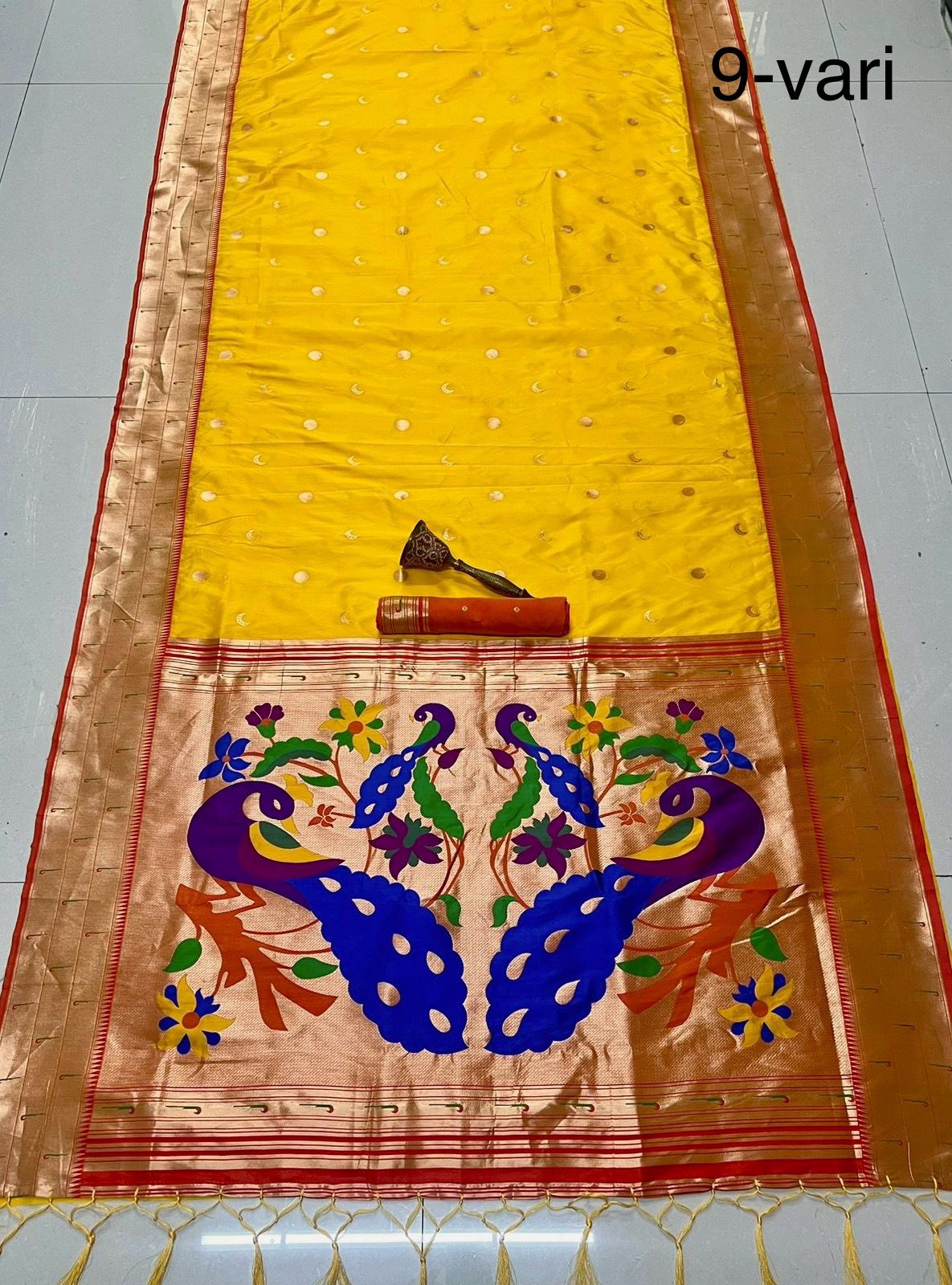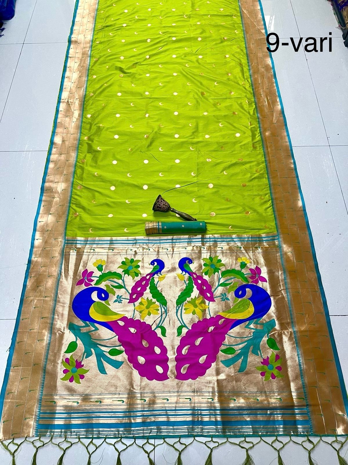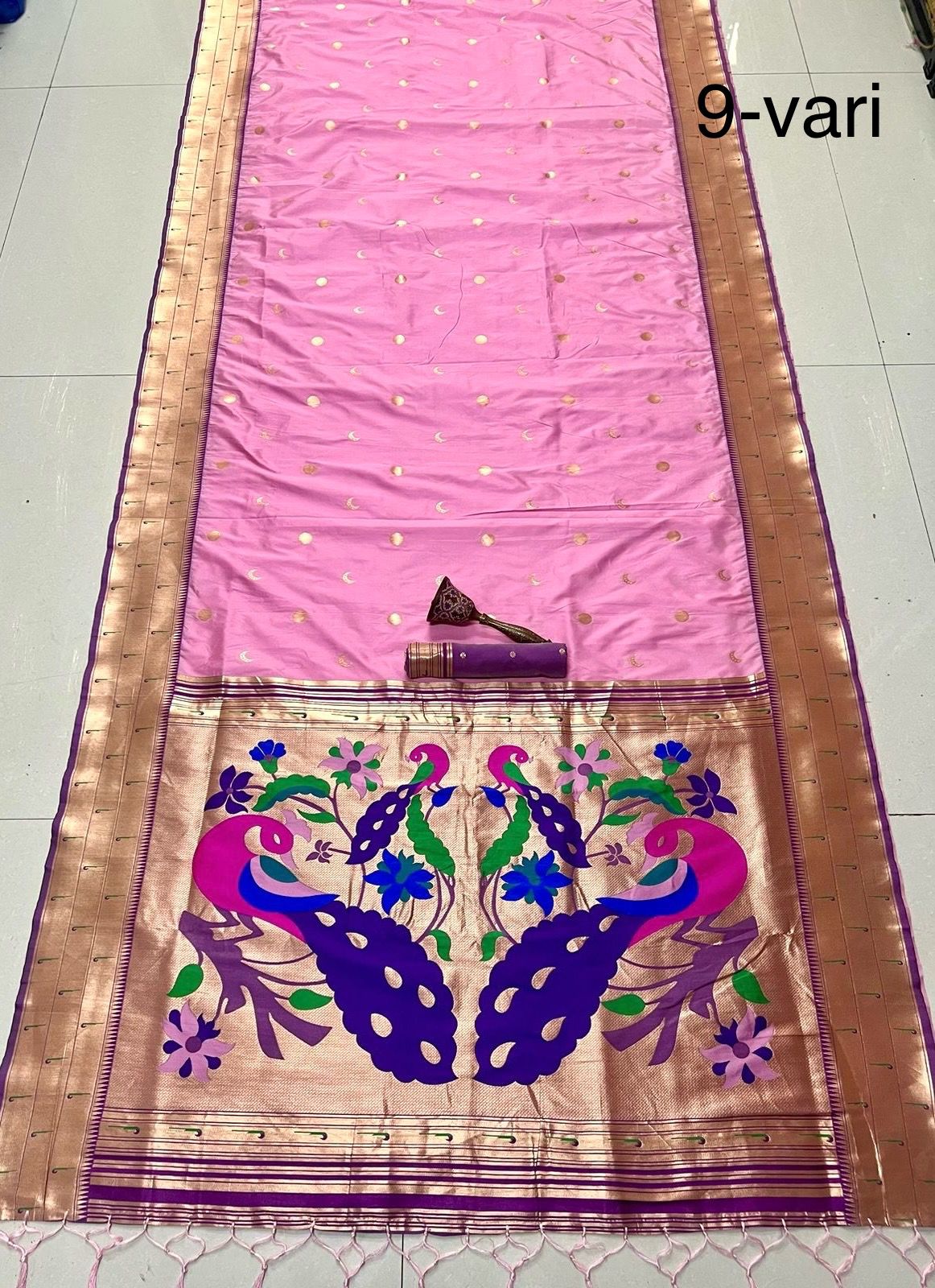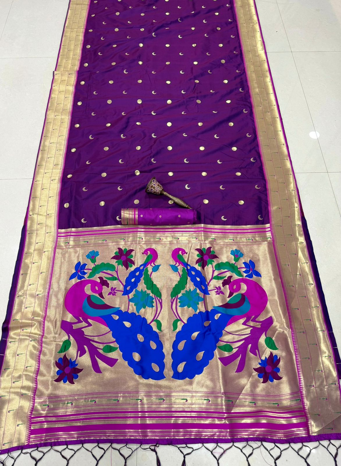 | Fabric: | Pure Soft Kanchivram Pethani Silk Original Pure Zari Wiwing And Both Side Minakari Boder Heavy Mina Zari Weaving Pallu 9 YARD SAREE |