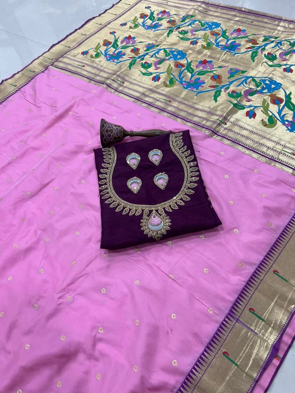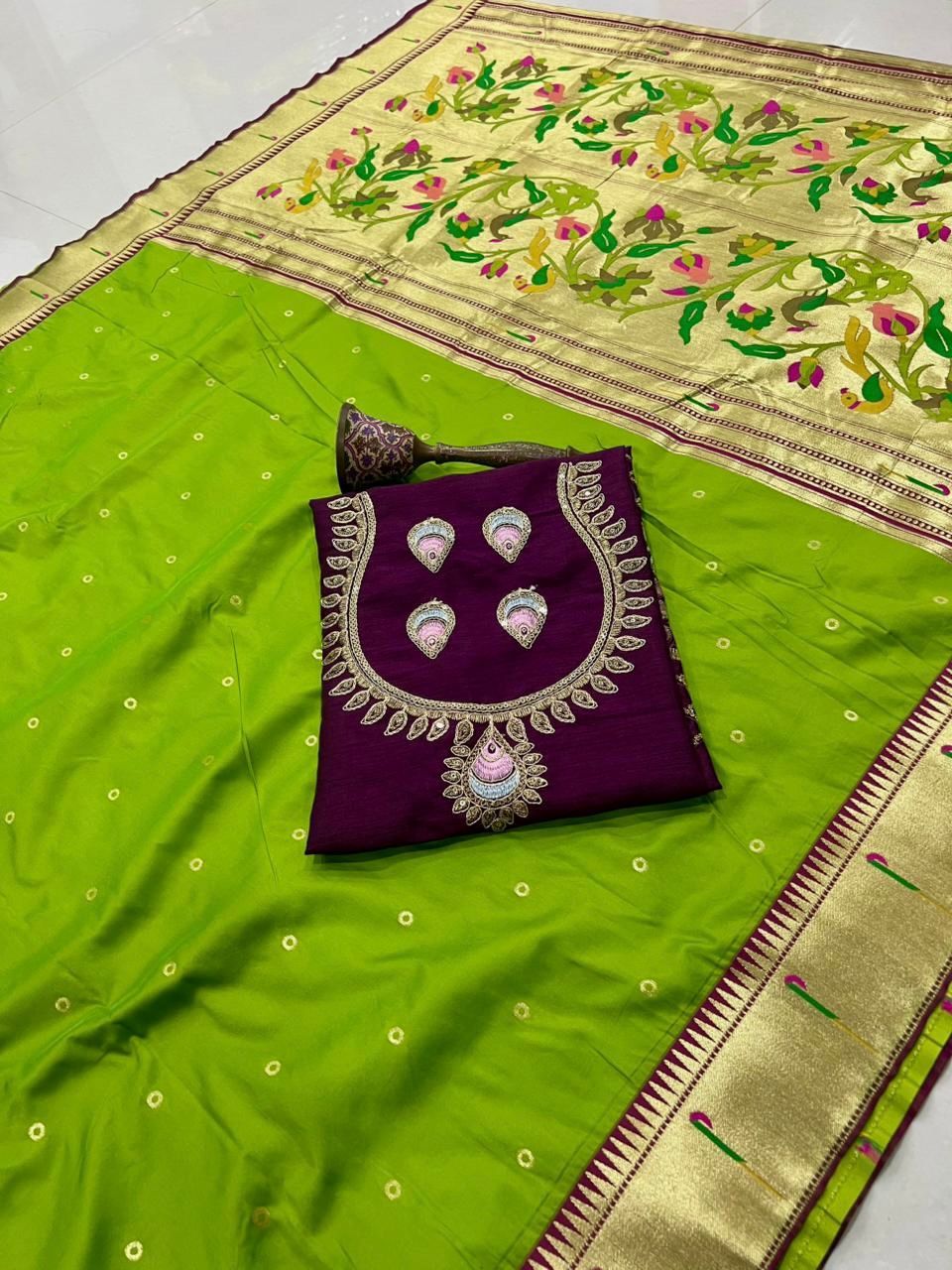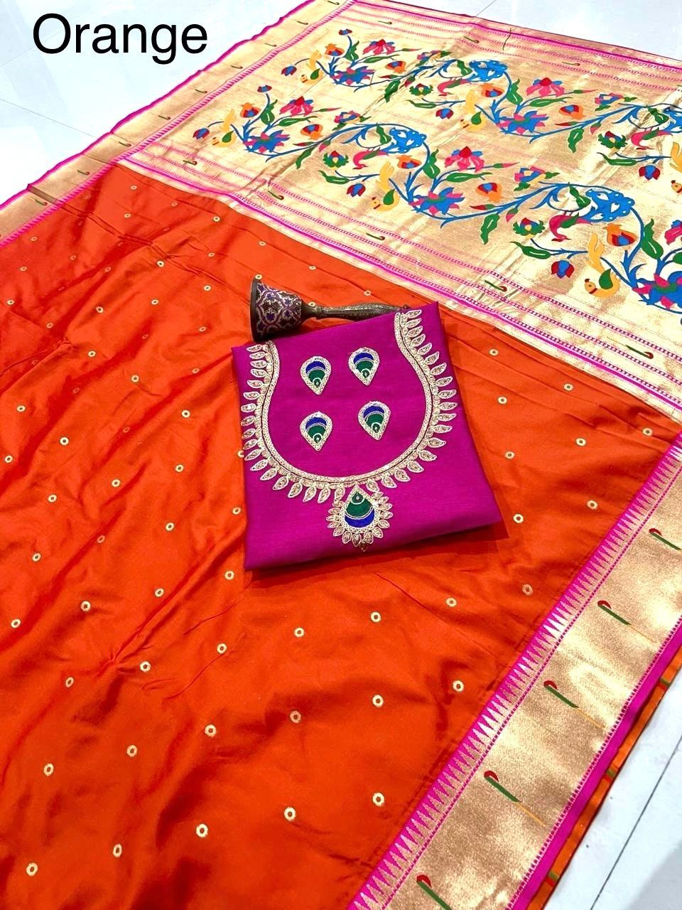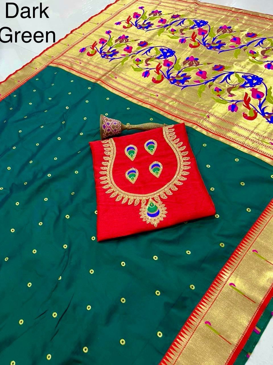 Pure Soft Kanchivaram Paithani Silk Saree With Embroidery Work Blouse 12 Pc Catalog