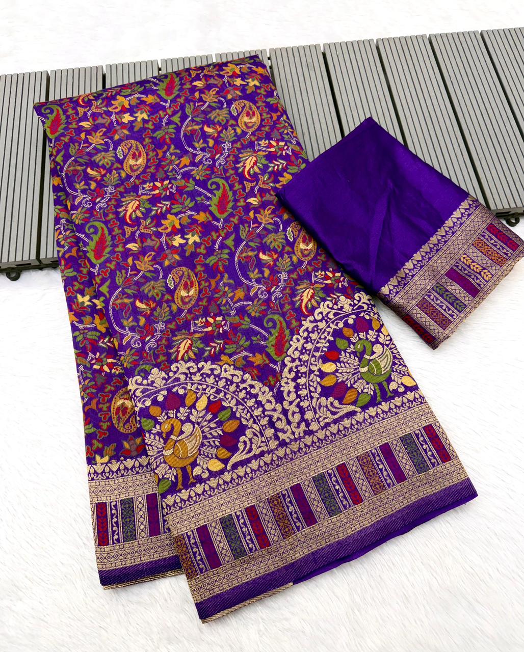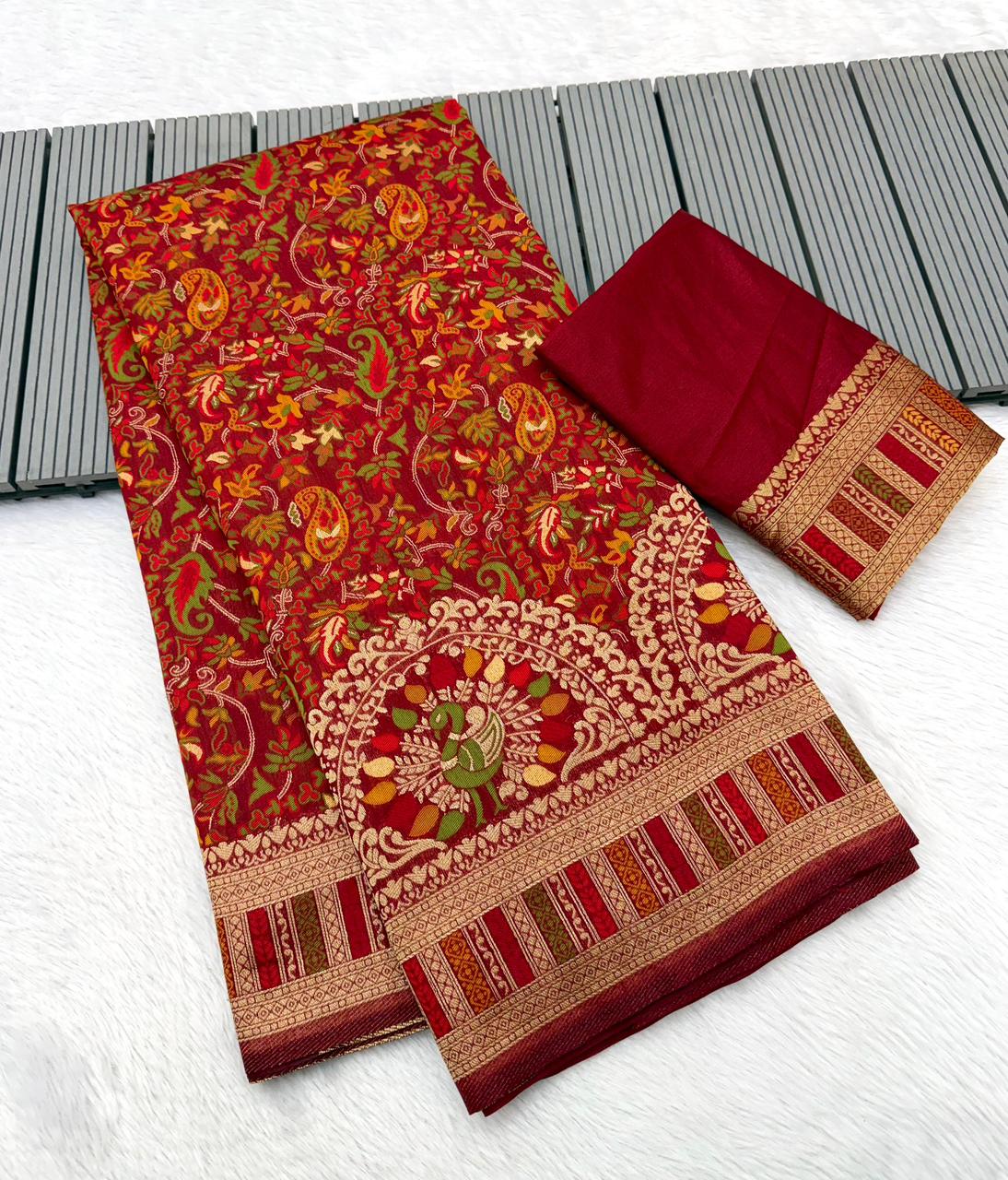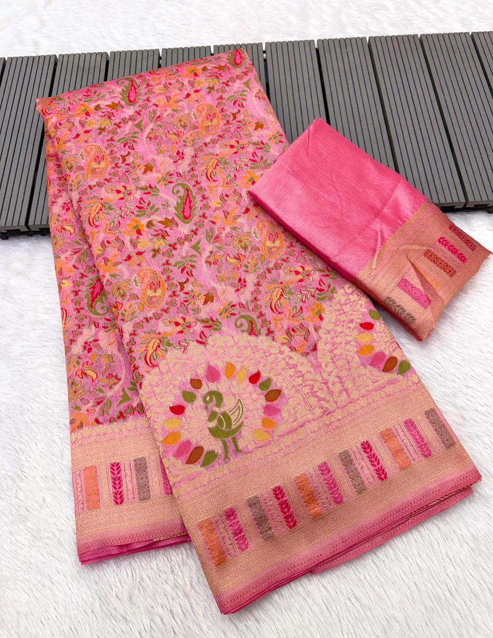 Pure Soft Rajwadi Pashmina Silk Weaving Saree Wholesale Price 6 Pc Catalog