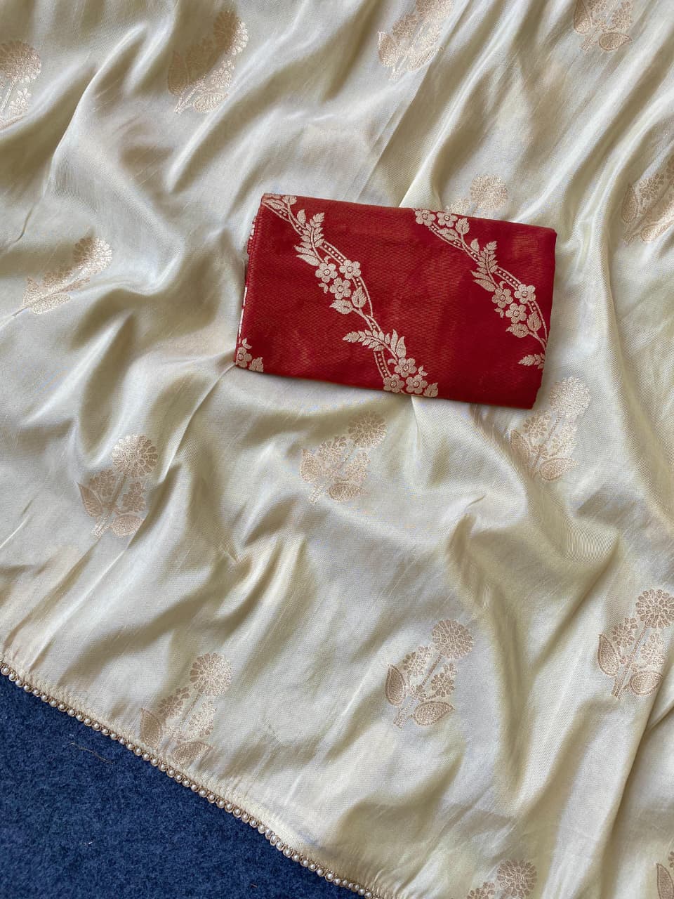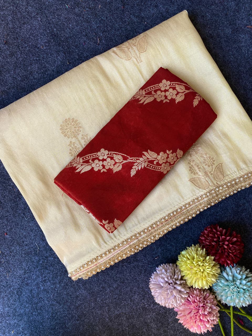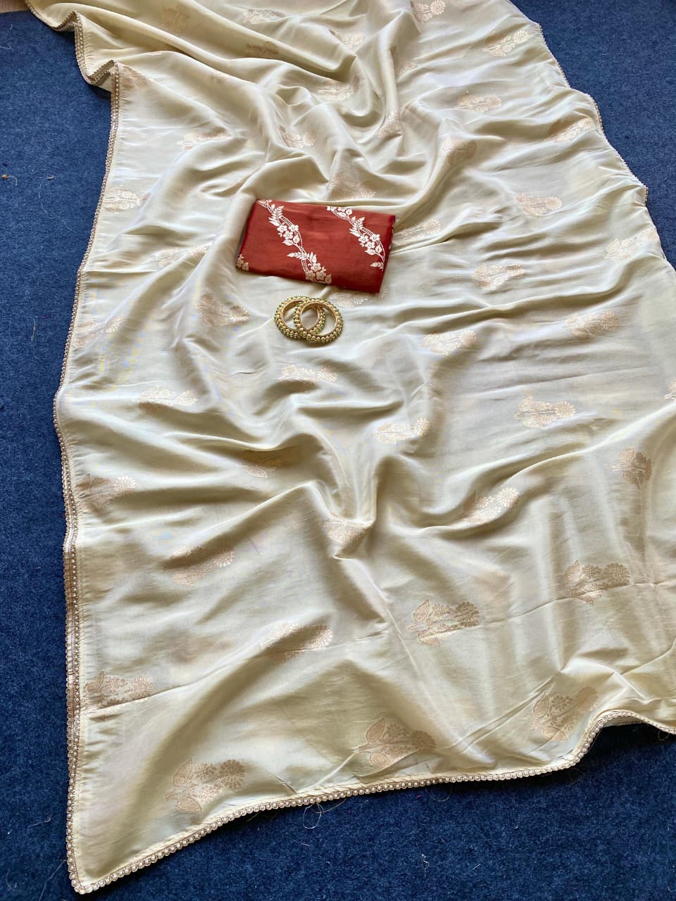 | Fabric: | Pure viscose dola sarees with beautiful comtrast combination blouse saree pattern with zari viscose motifs all° Over saree Teamed with scalliped beautiful Lace |