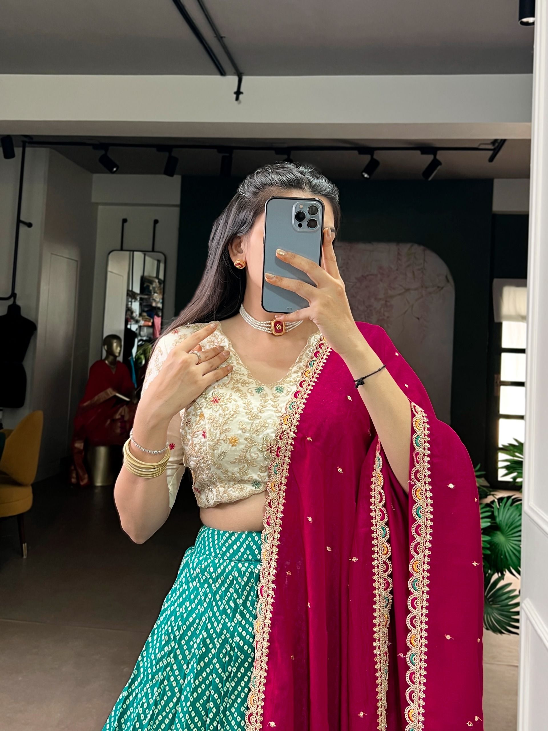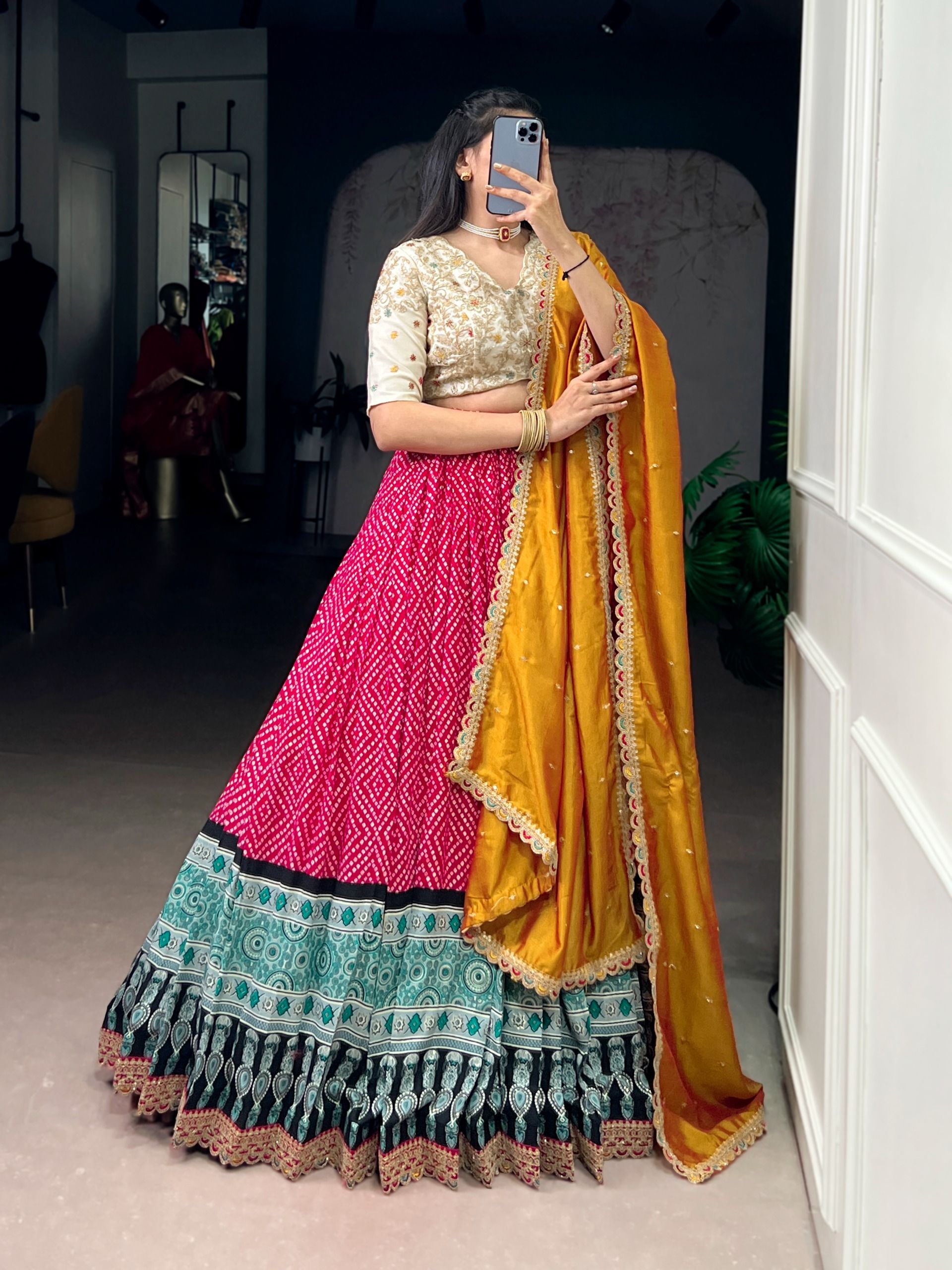 | Package | Lehenga, Blouse, Dupatta, Drawstring with Zip |