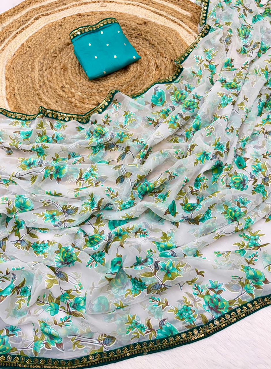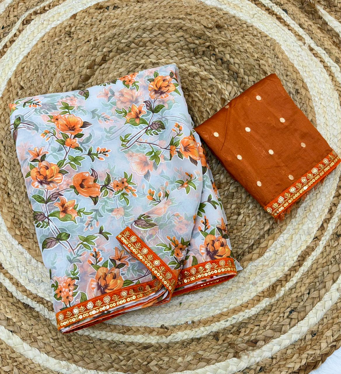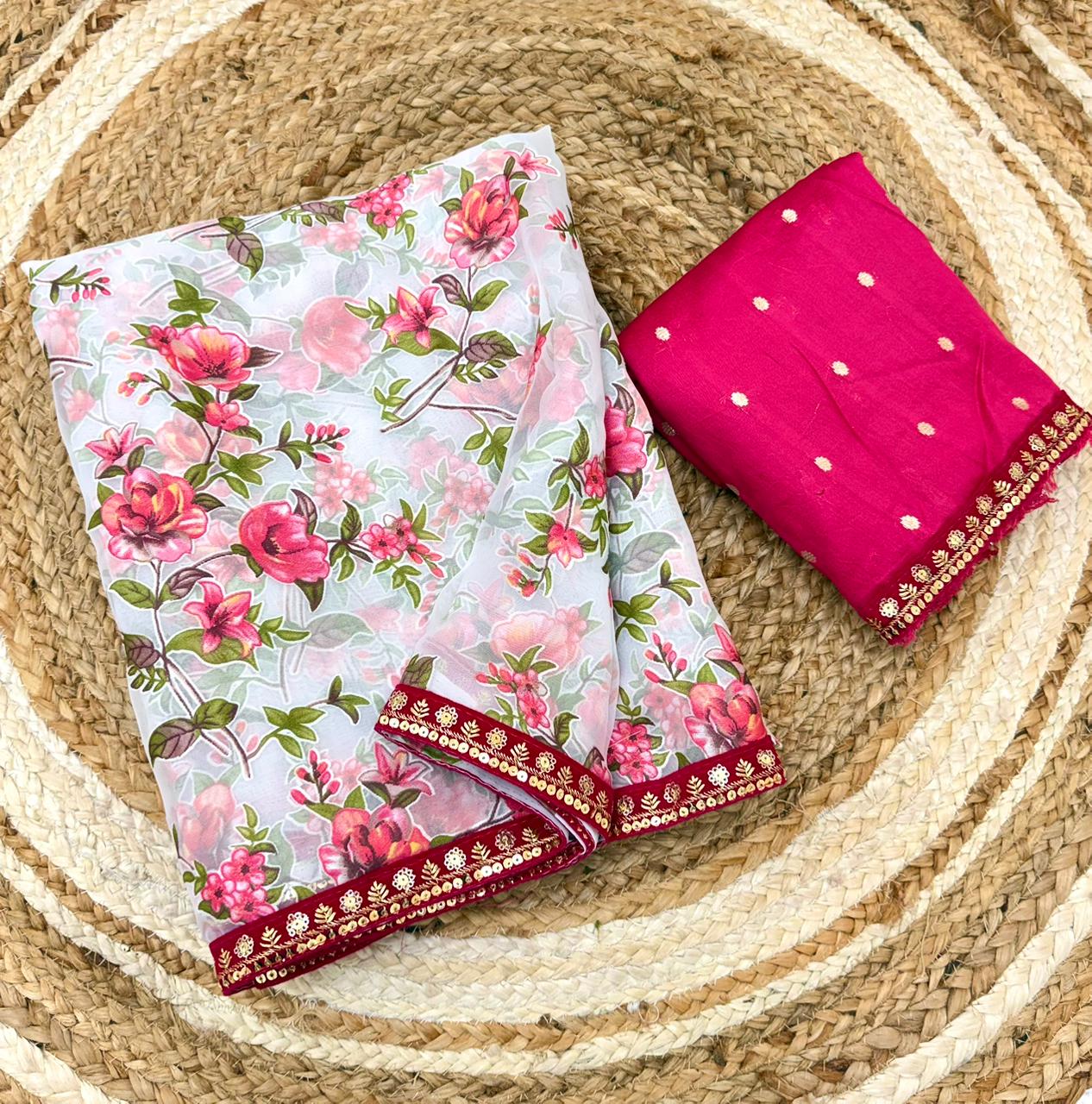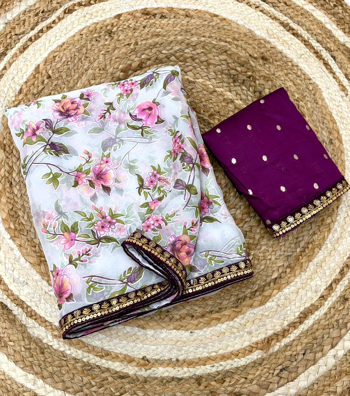 Organza is a fabric cultivated from organza silk. It’s one of the most stylish saris, perfect for summer.