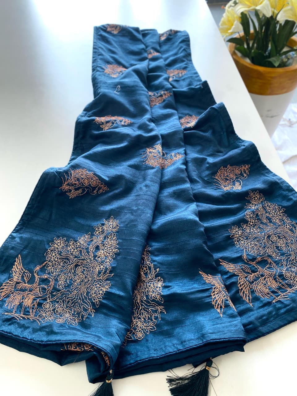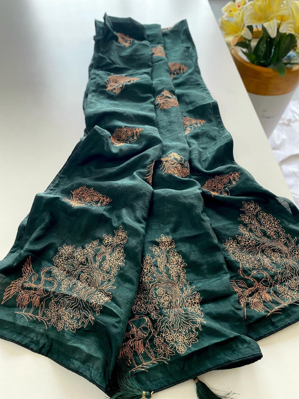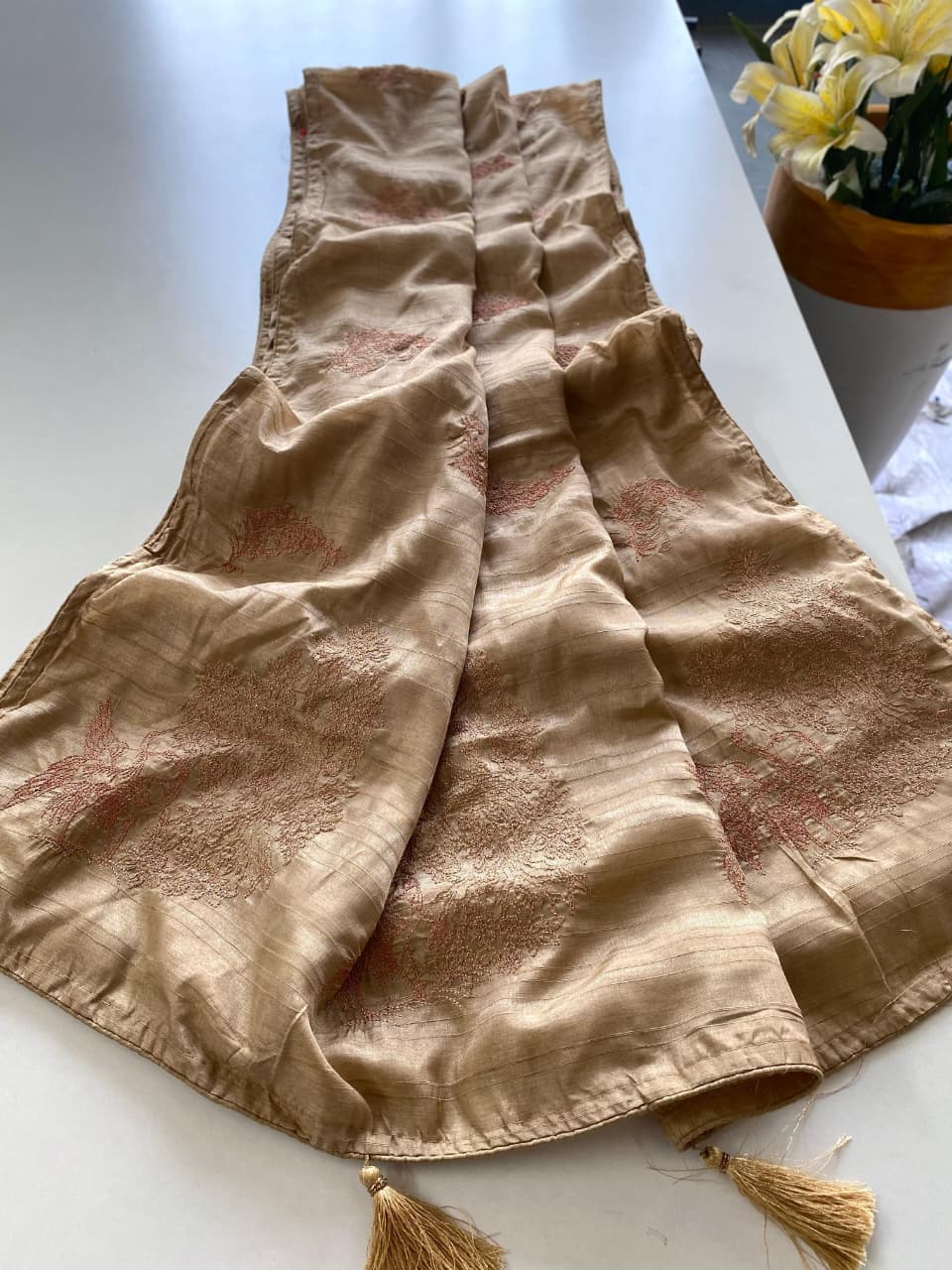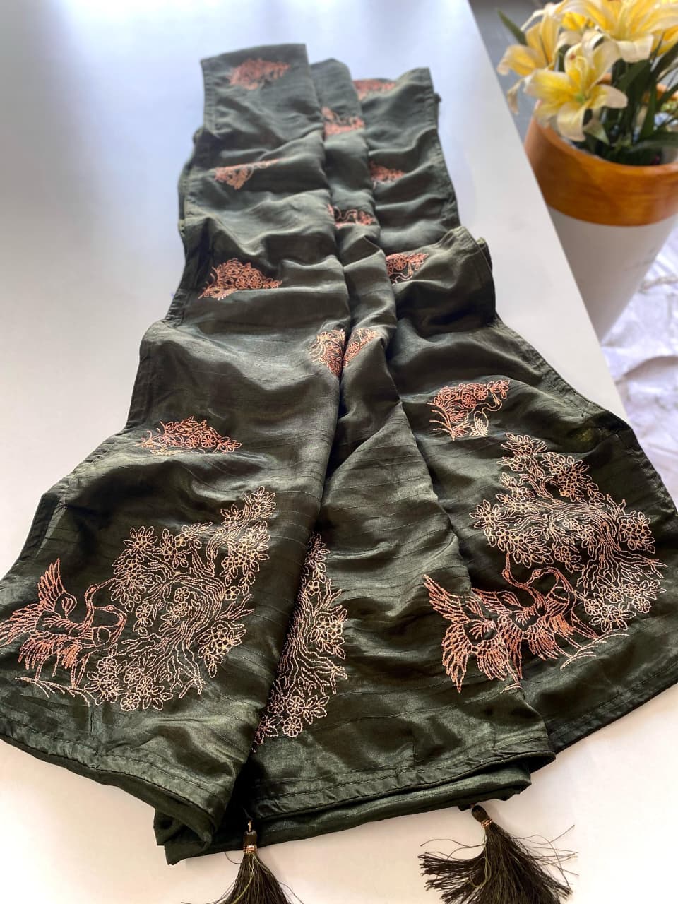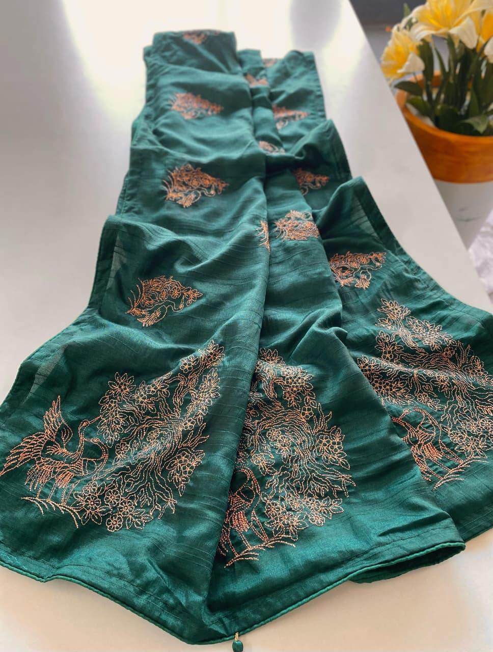 Organza is a fabric cultivated from organza silk. It’s one of the most stylish saris, perfect for summer.