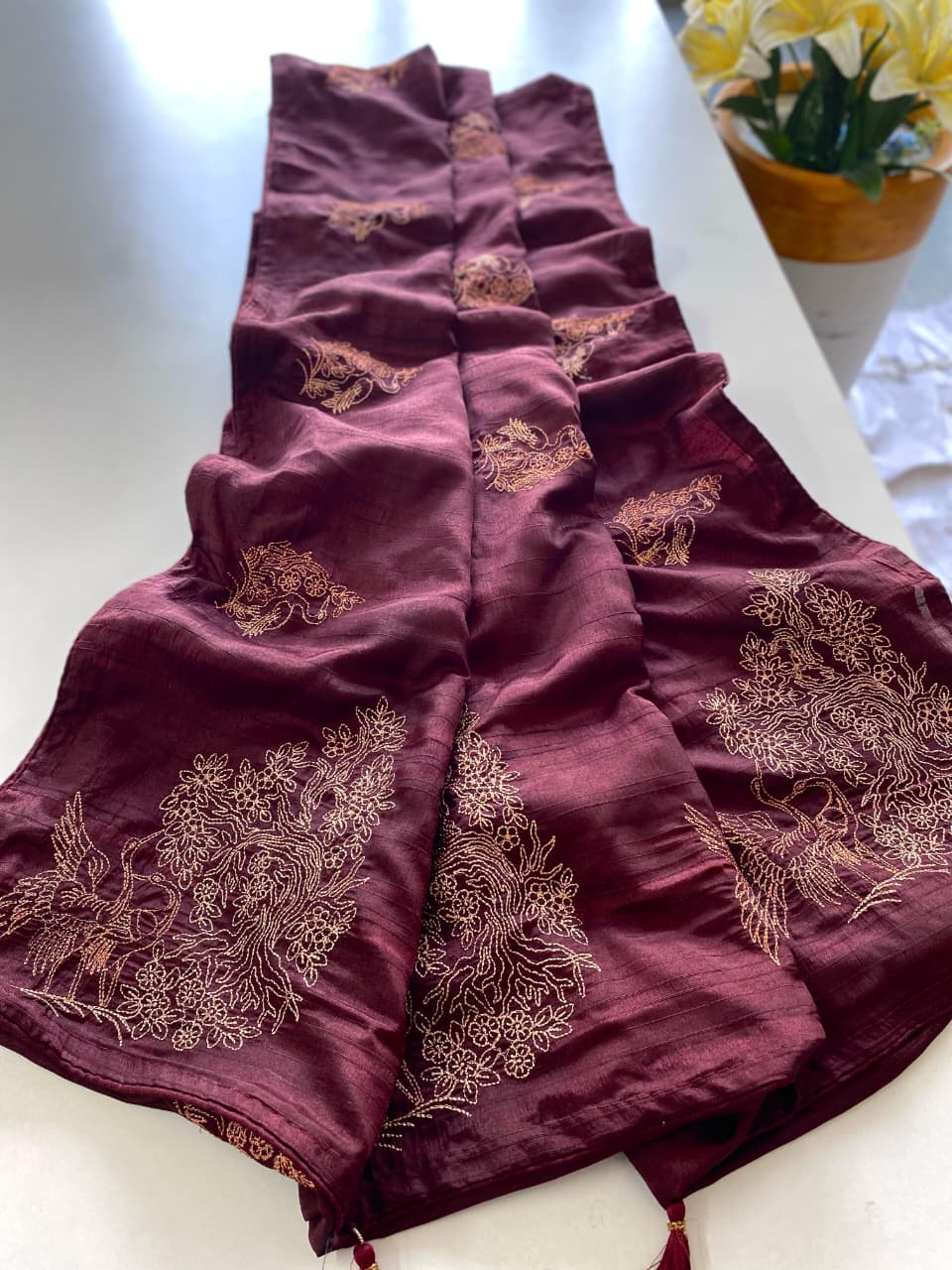 Silk With Zari Based Embroidery Saree Wholesale Price
