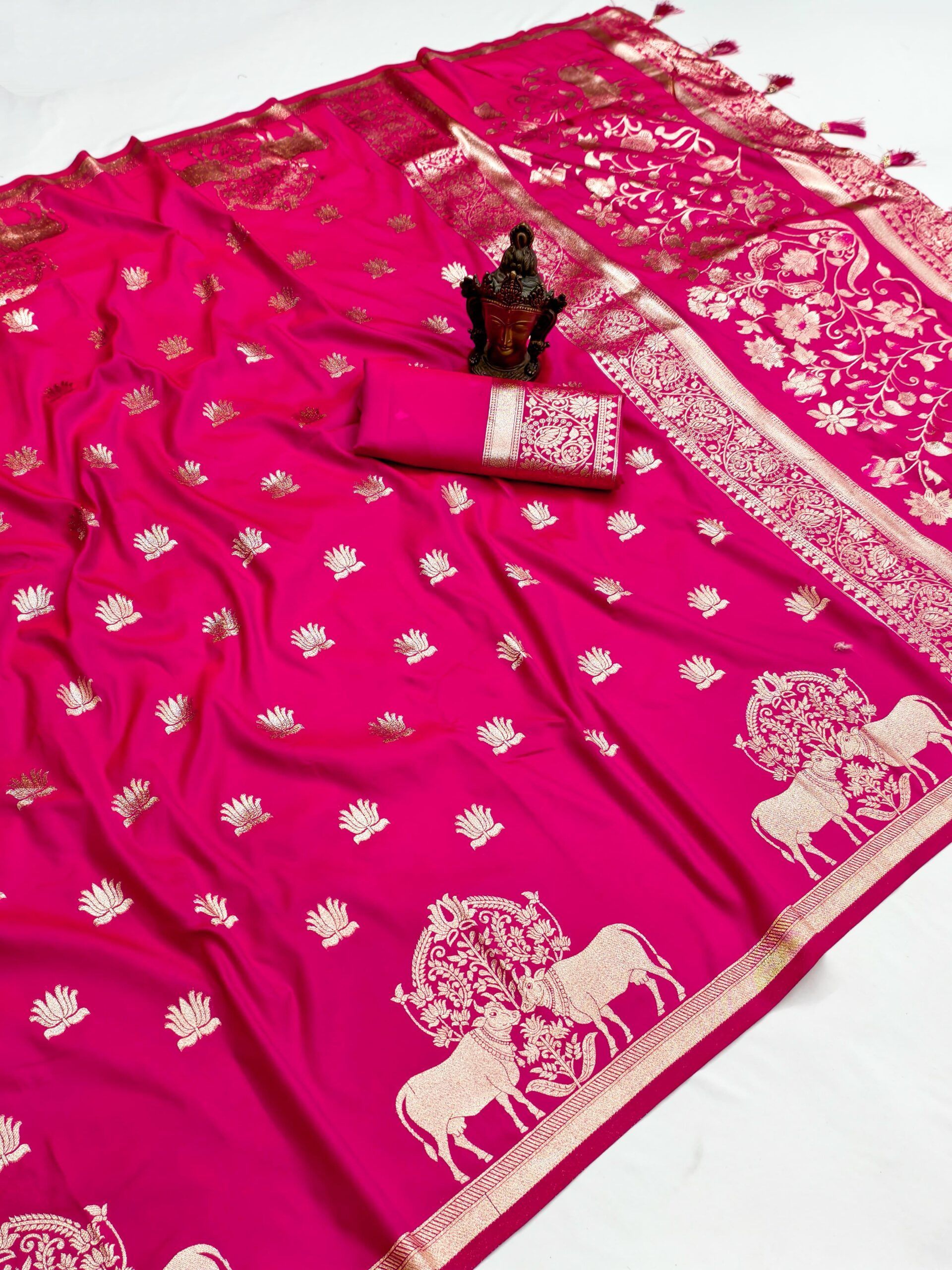 Fabric: Soft And Pure banarasi silk saree with self weaving design all over the saree