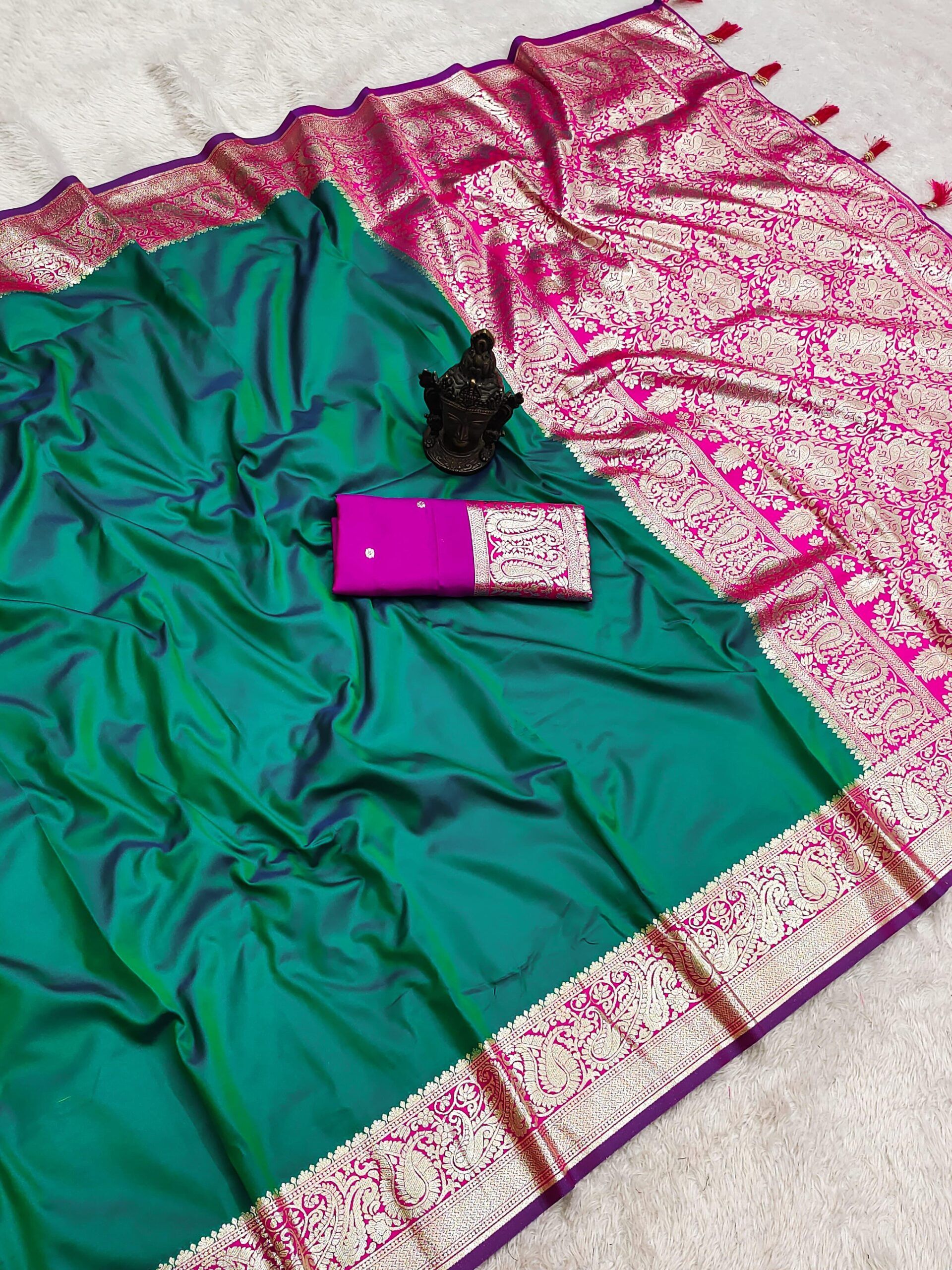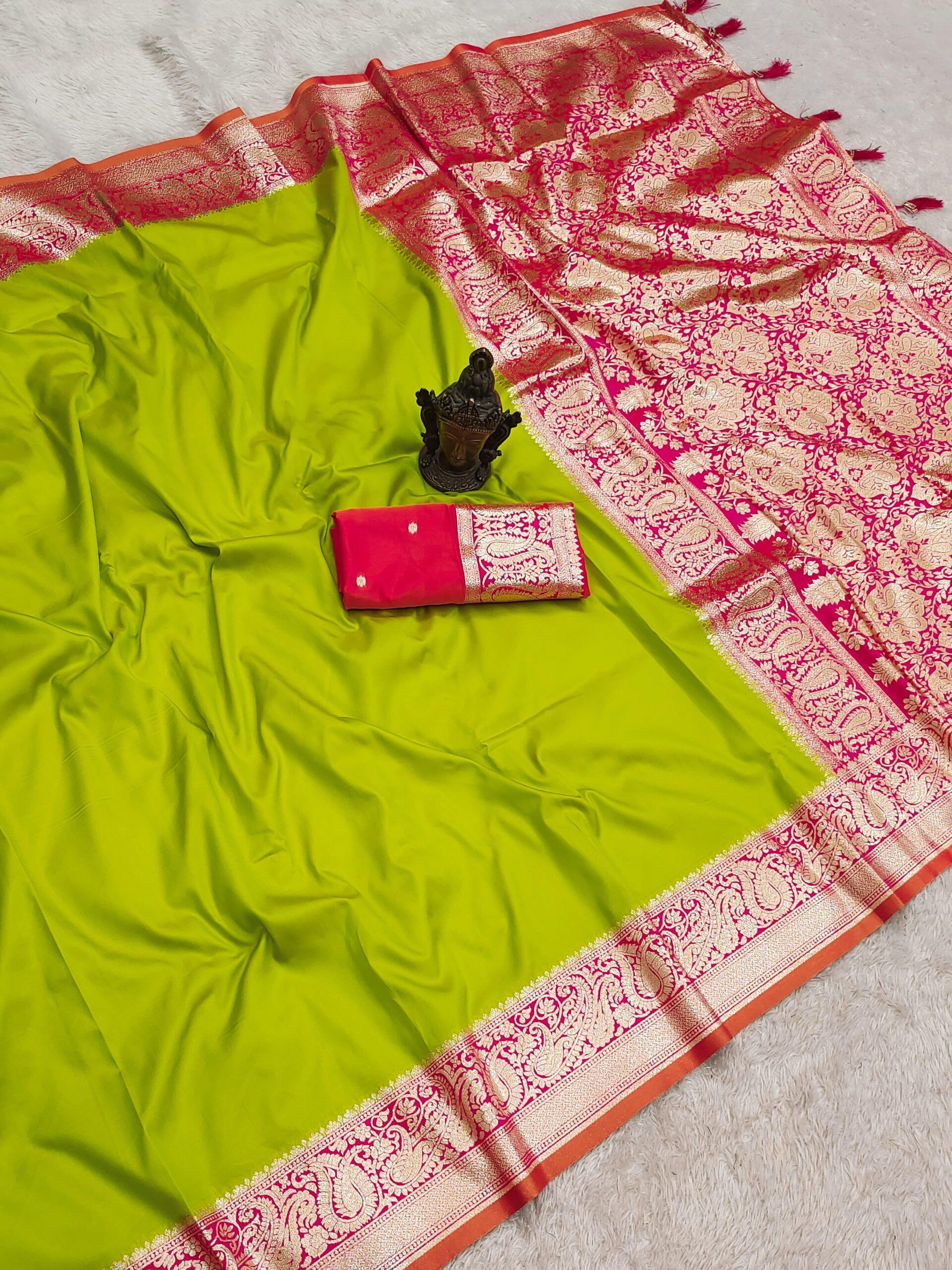Fabric: Pure Soft Banarasi Silk Saree With Beautiful Colours And