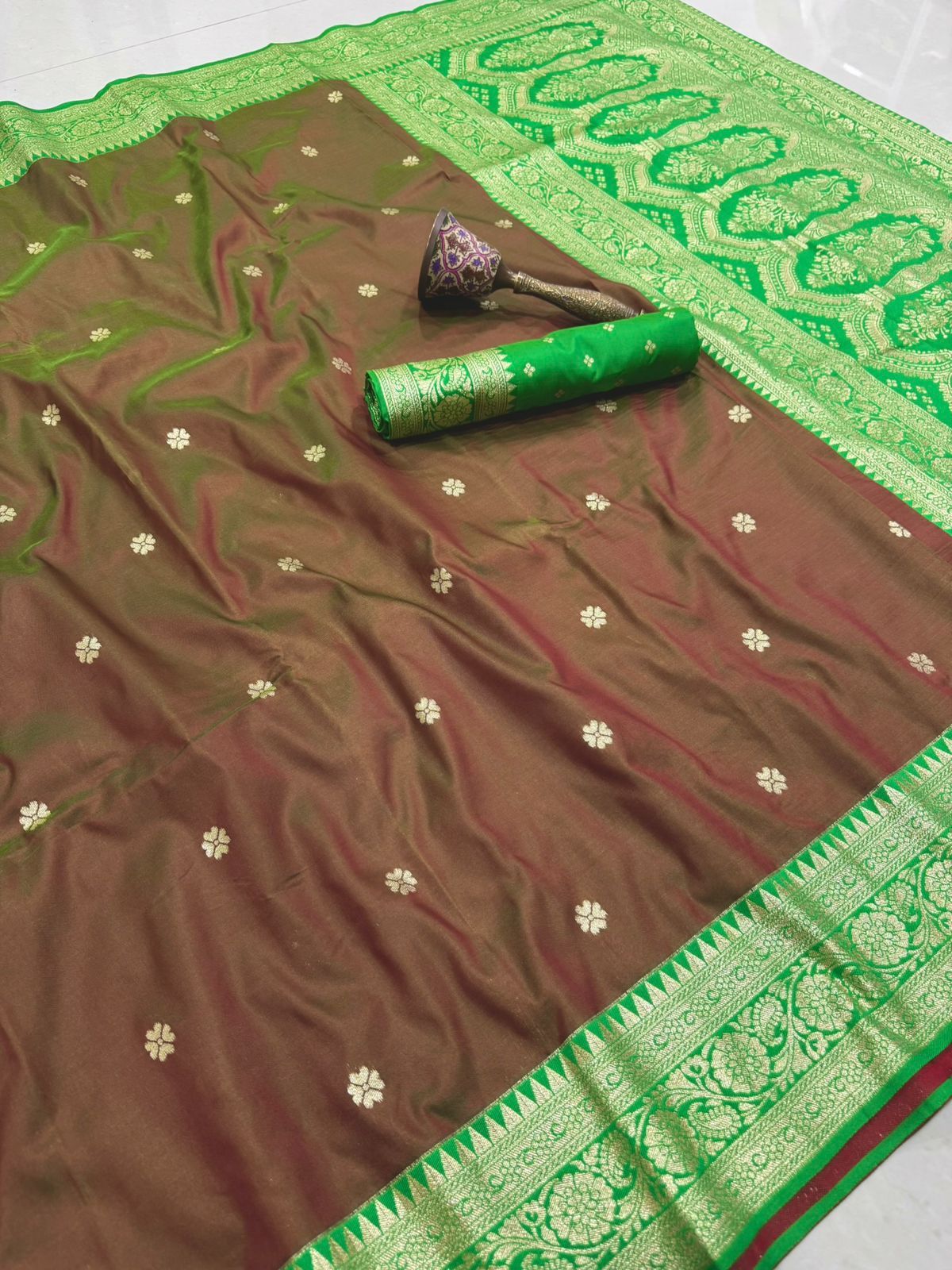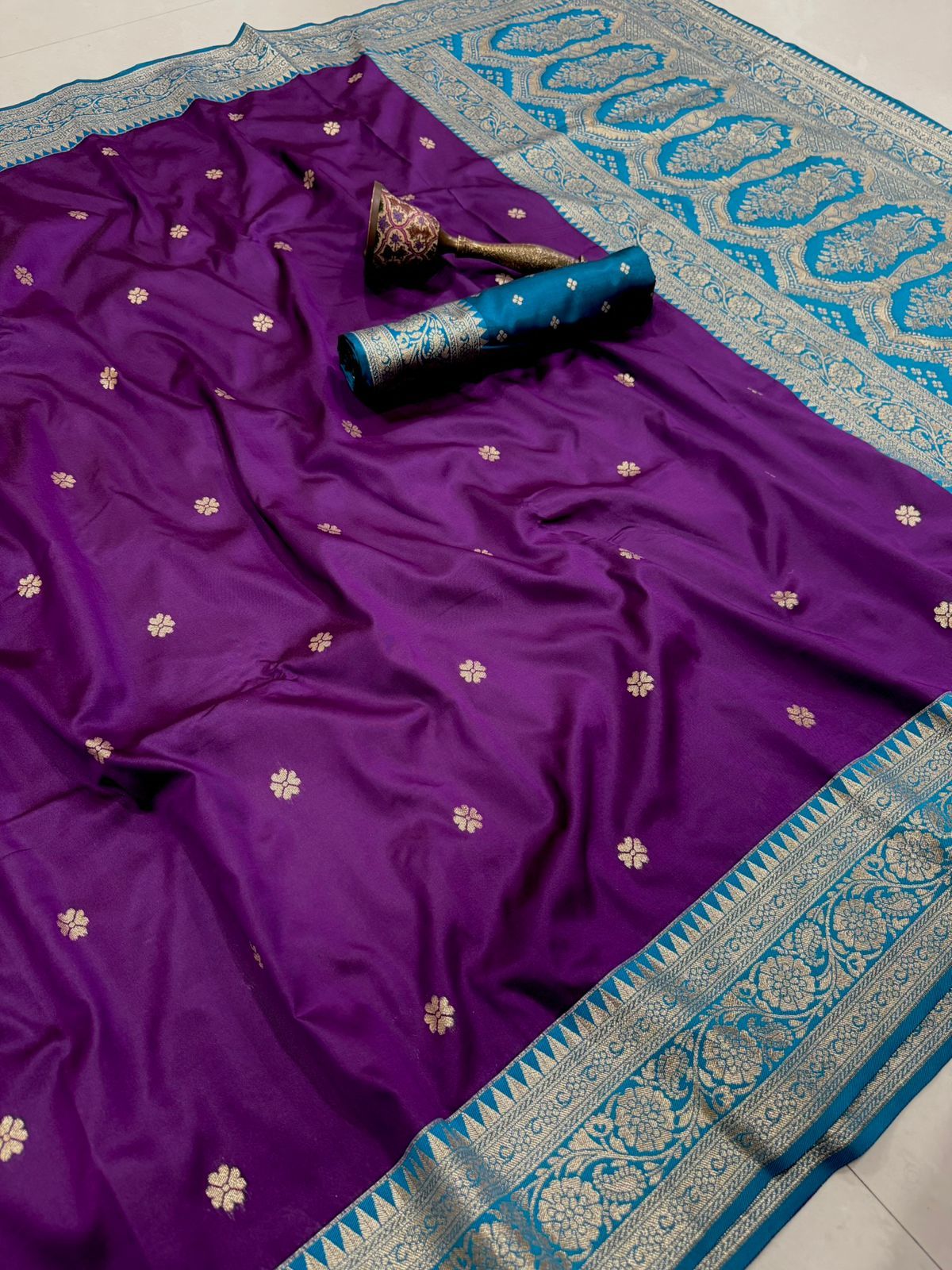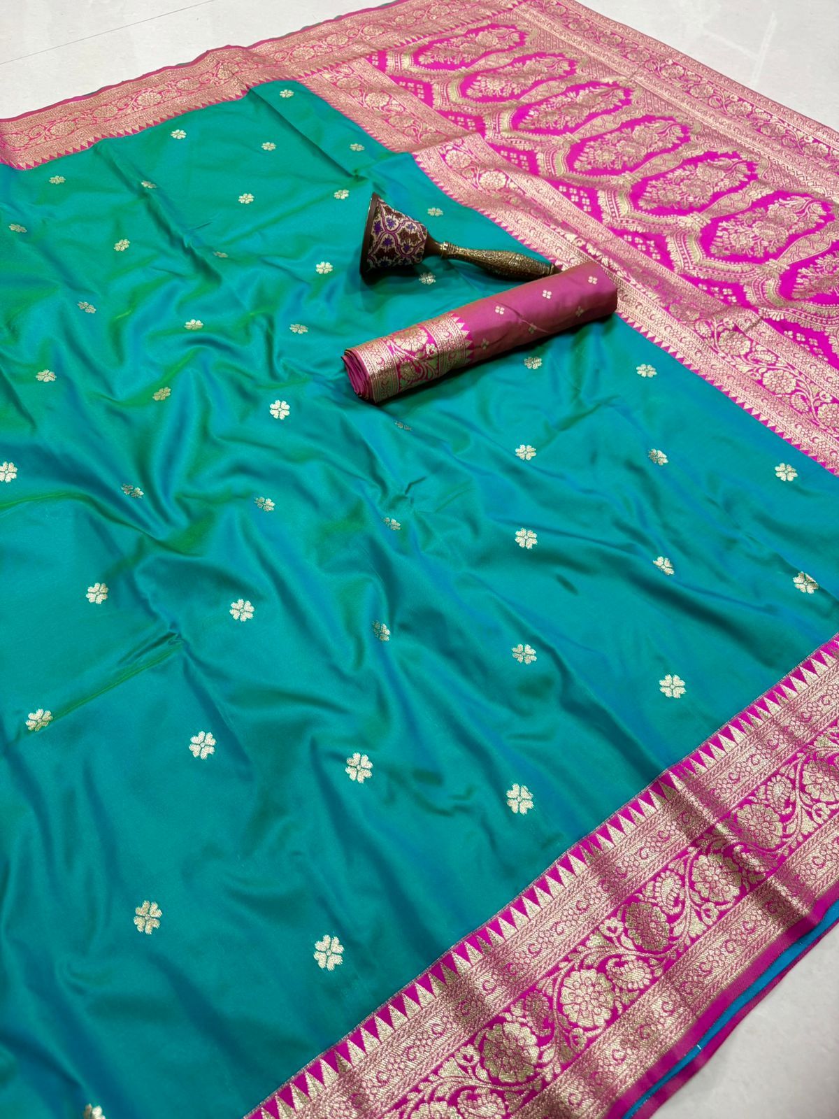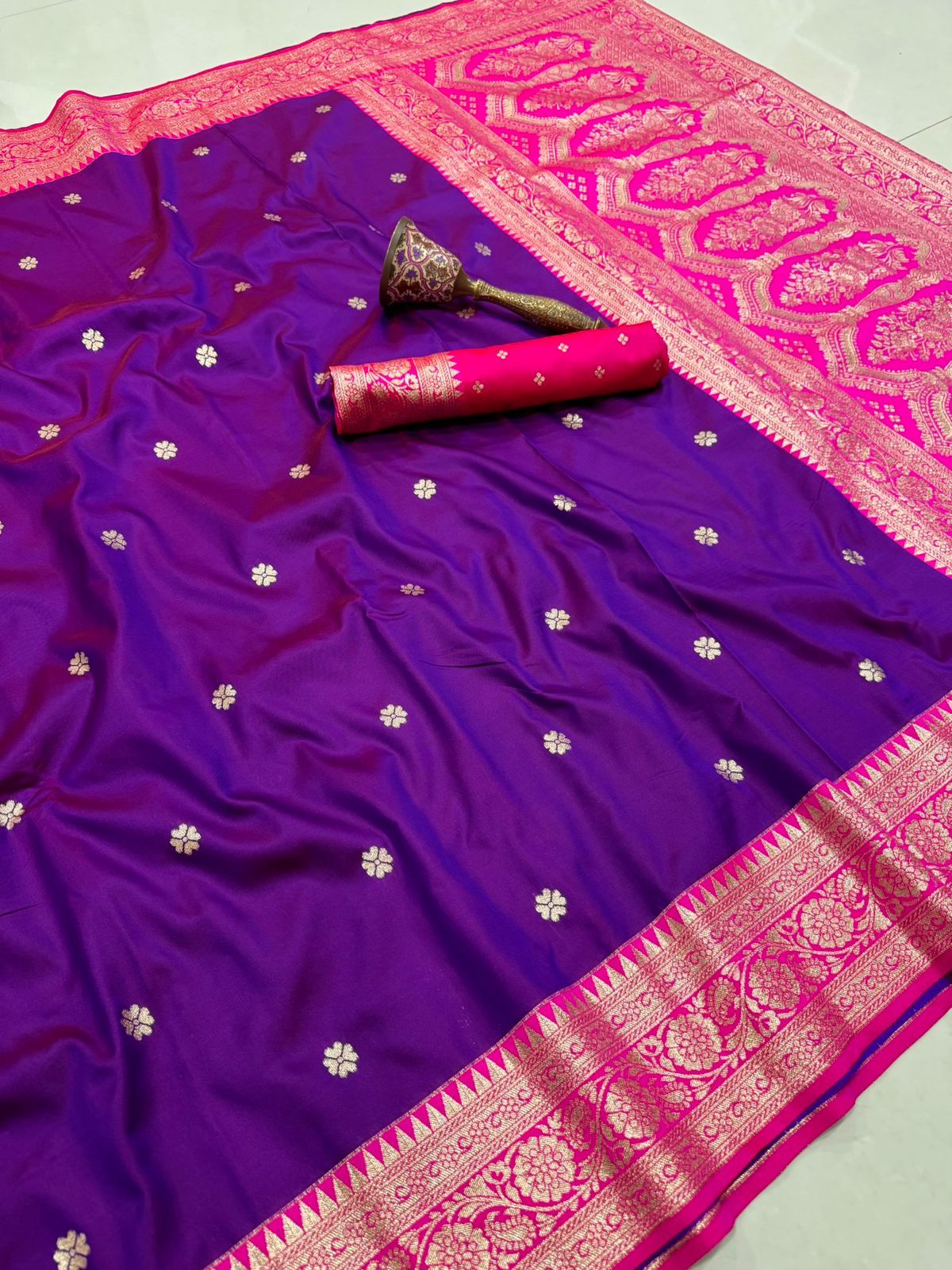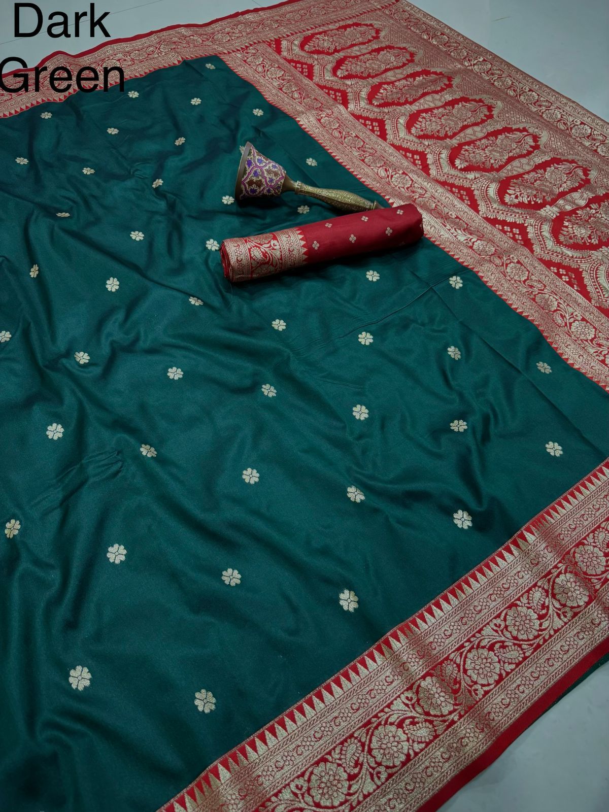 Soft Banarasi Silk Saree With Zari Weaving (15 Pc Set)