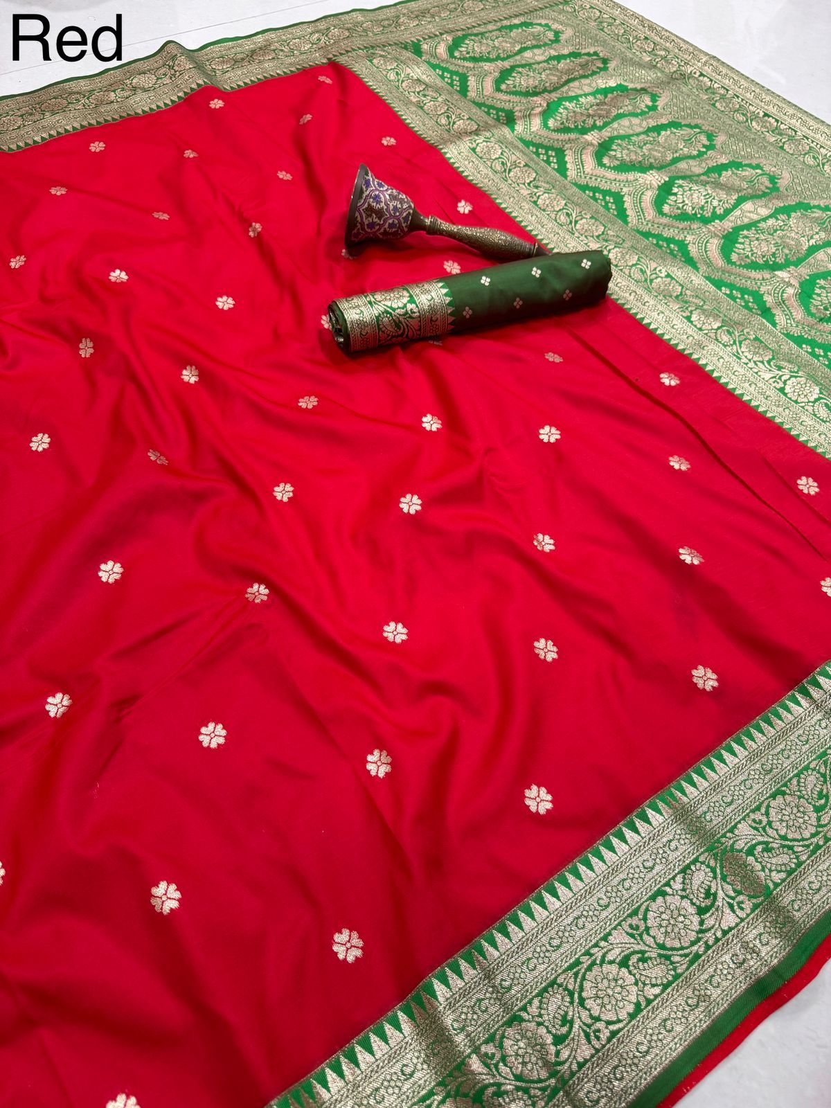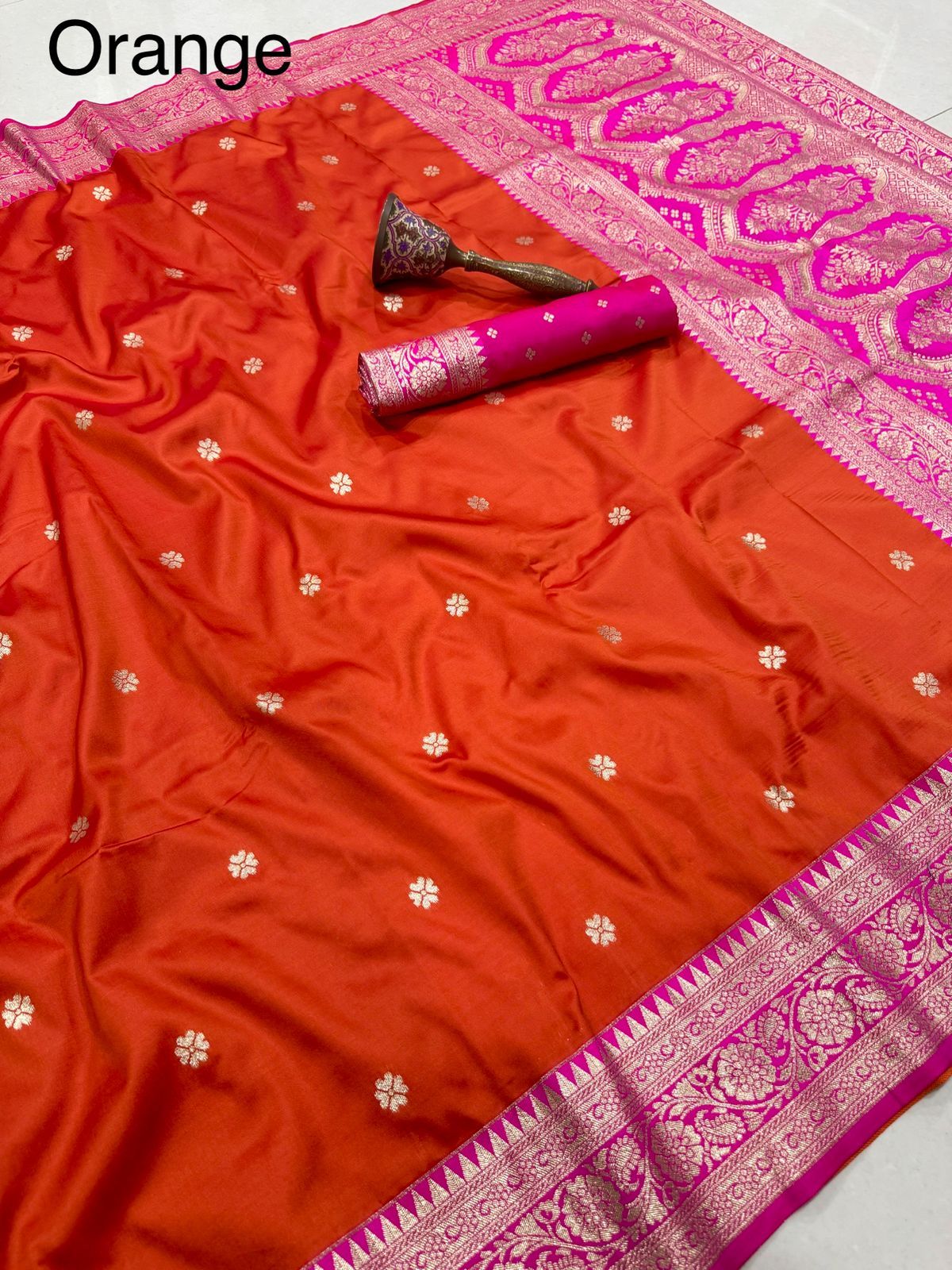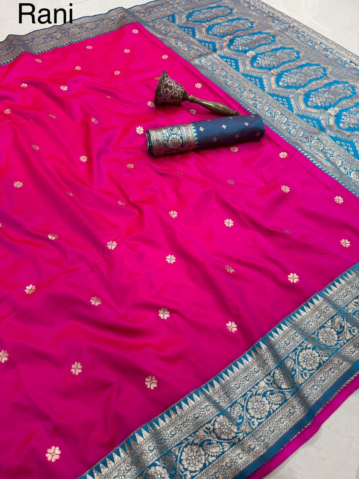 | Fabric: | pure heavy Banarasi silk Original gold jari Dijain n weaving contrast pallu and boder |