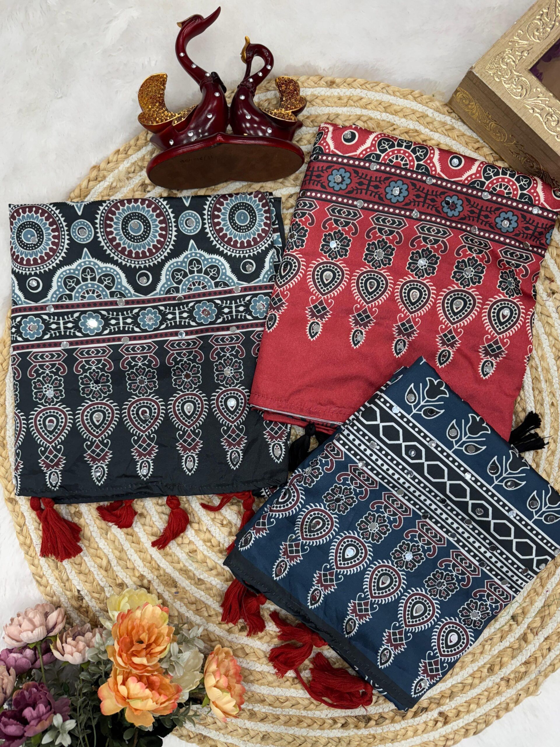 Soft Crape Silk Ajrakh Print Saree Wholesale Price 2 Pc catalog (Copy)