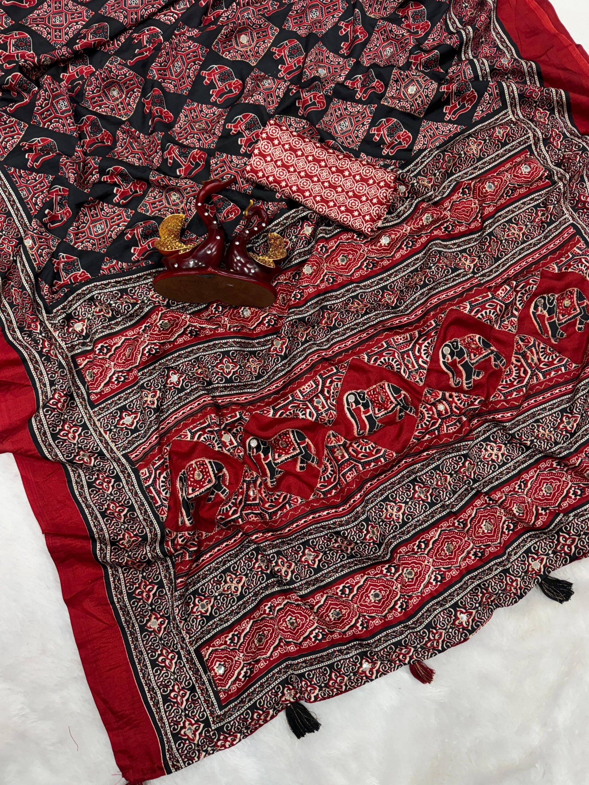 Soft Crape Silk Ajrakh Print Saree Wholesale Price 2 Pc catalog