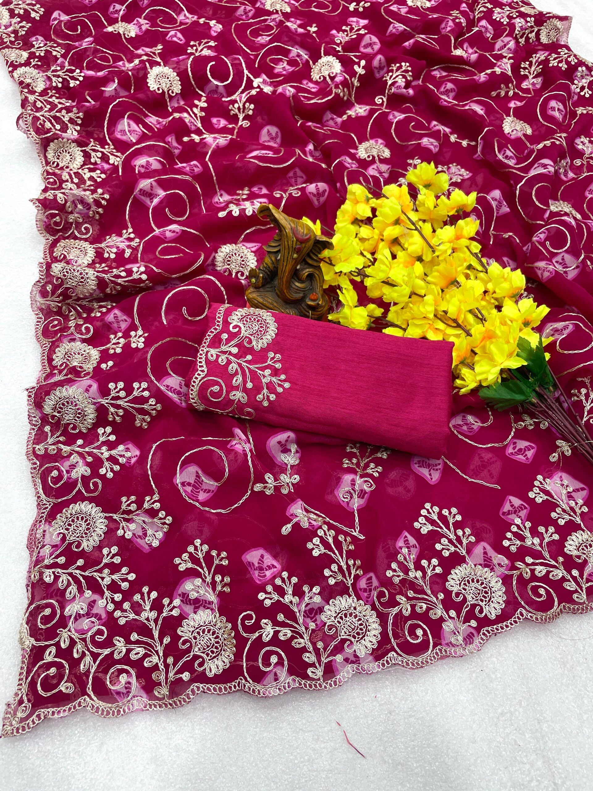 Organza is a fabric cultivated from organza silk. It’s one of the most stylish saris, perfect for summer.