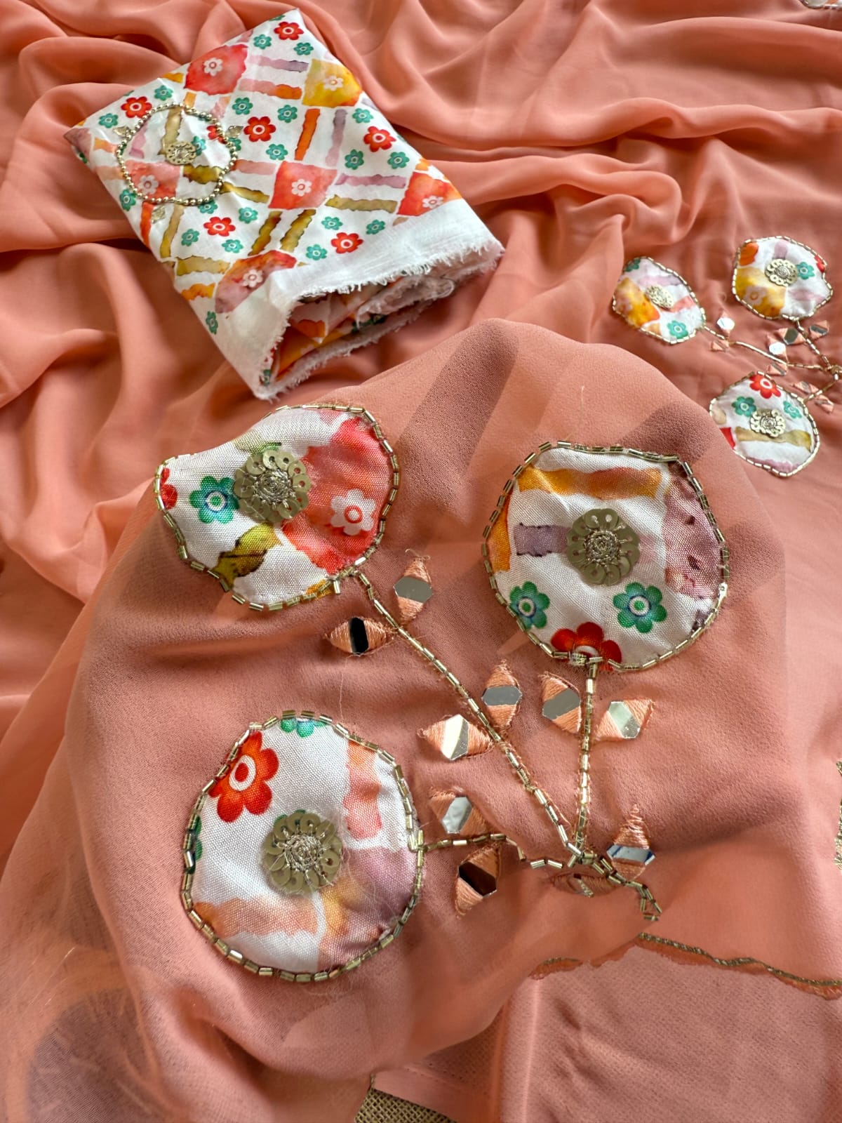 Fabric: Soft Georgette Fabric With Beautiful Patch Work