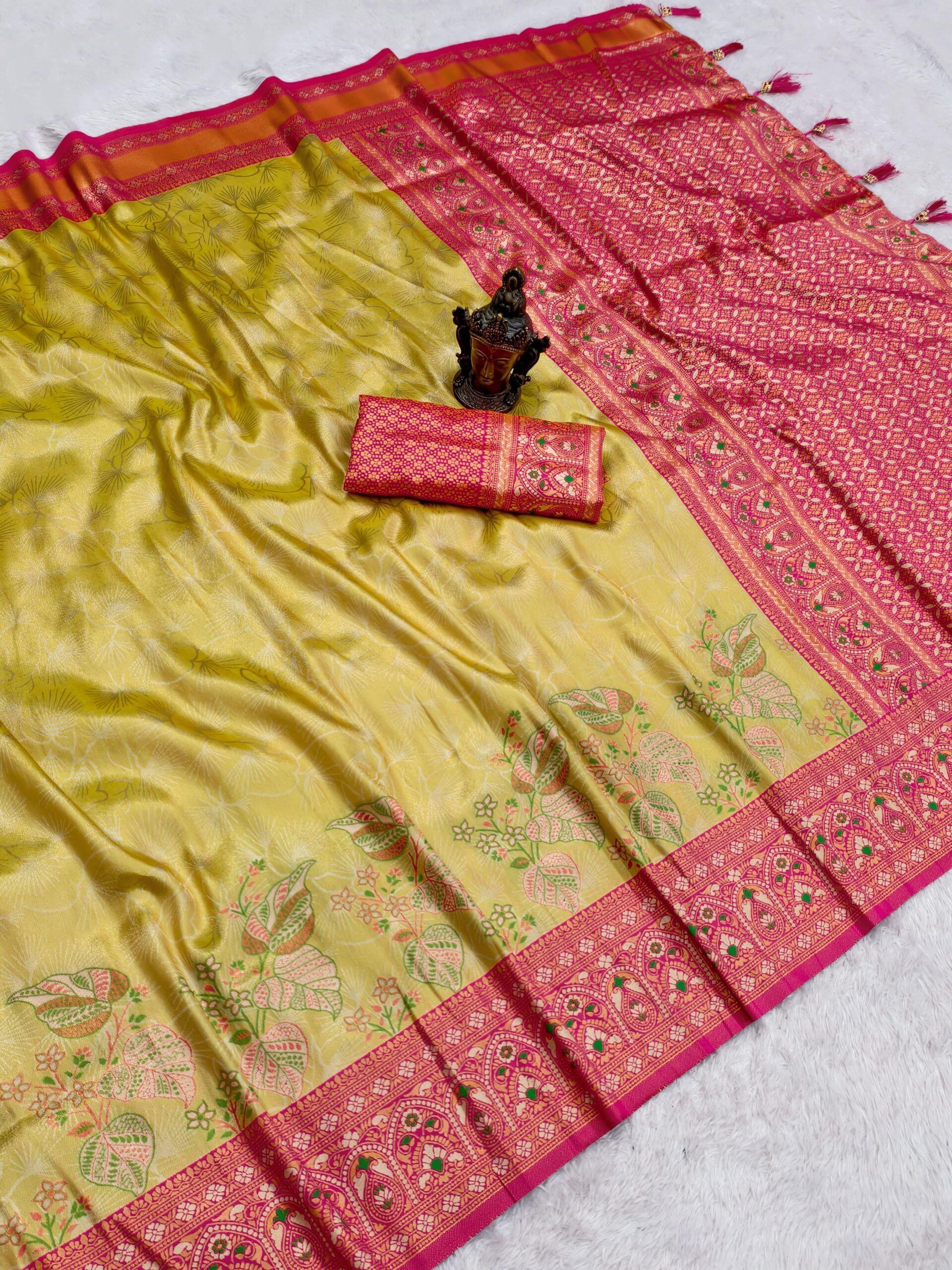 Also known as the Kanchipuram saree, this originated in southern India and is famous all over India today. They are known for their lustrous silk fabric, which has a rich appeal. Kanjivaram is generally woven with silver and golden threads, which makes them stand out.