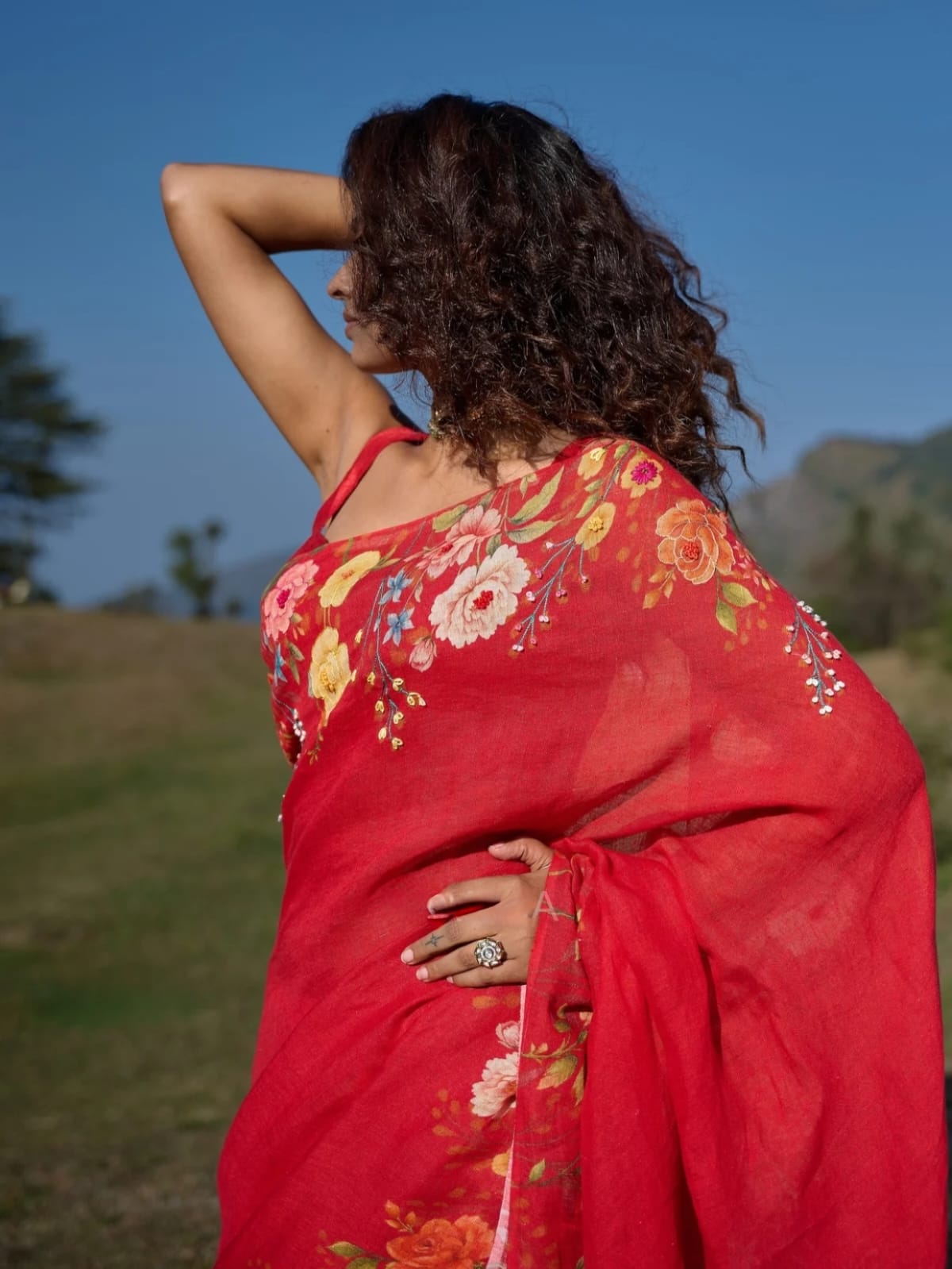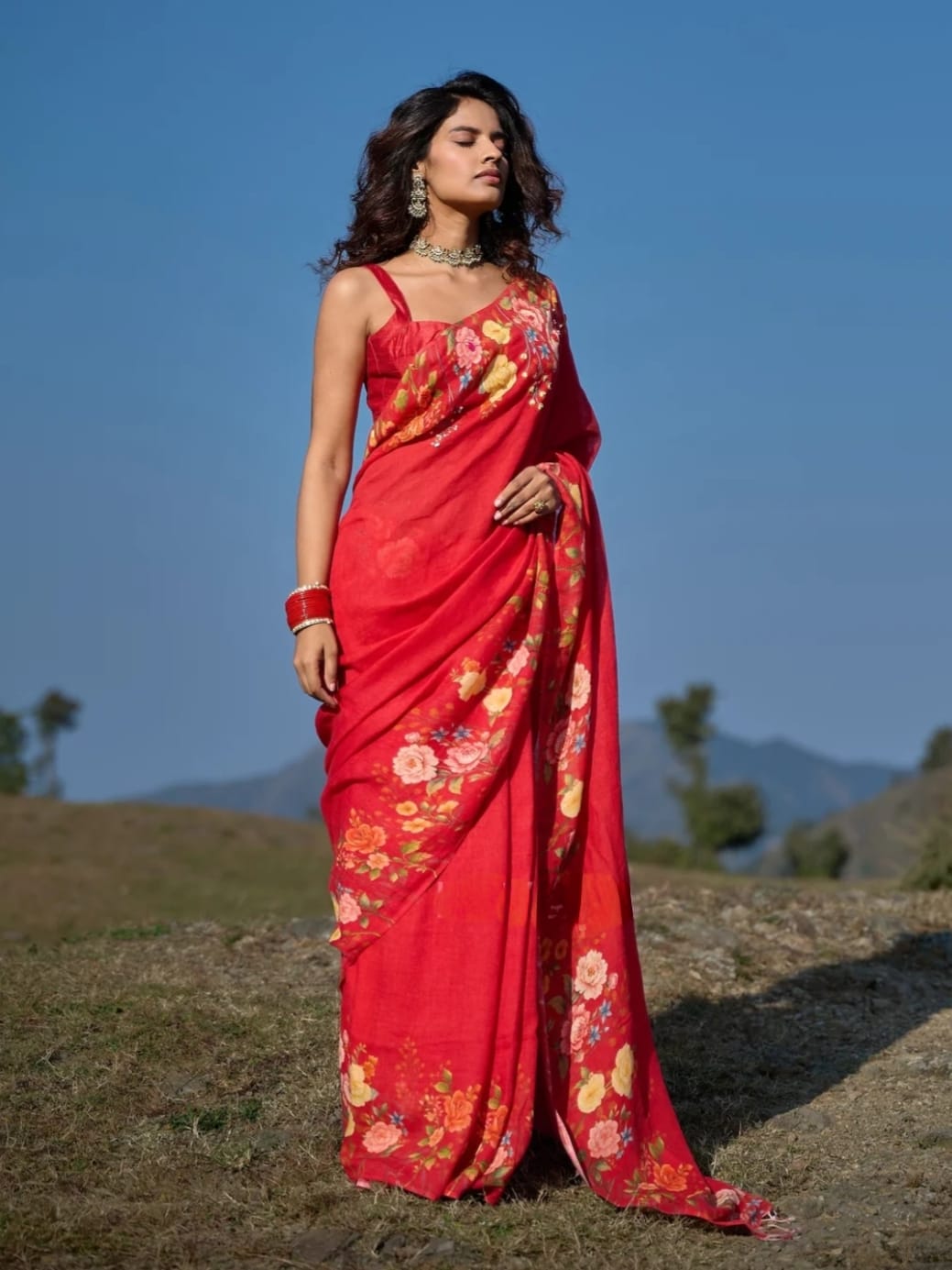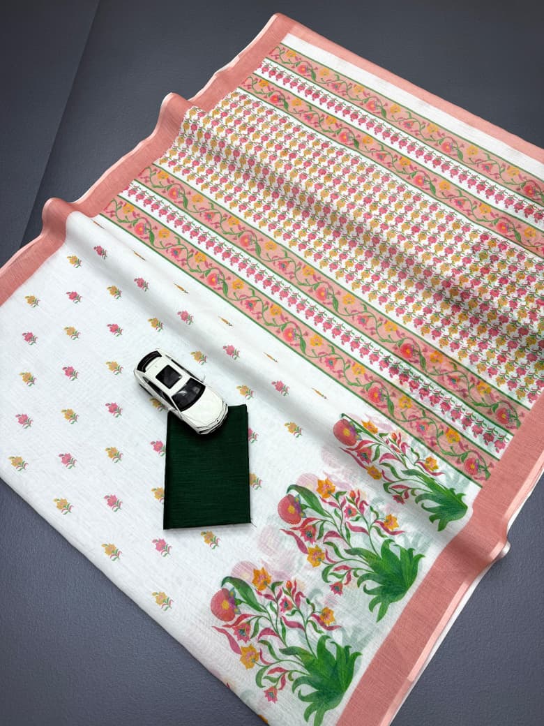 Fabric: Soft Linen With Digital Print. Saree length – 5.50 Meter