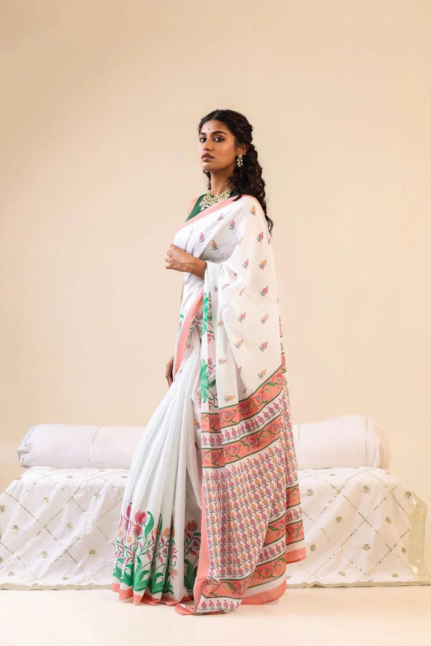 It’s the comfiest and the lightest fabric, making it the best choice for the summer season. Cotton Sarees have been an absolute favourite for most women because of their amazing comfort. Cotton is a fabric that easily absorbs sweat, helping you beat the heat in style.