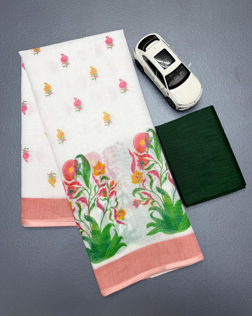 Soft Linen With Digital Print Saree(2 Pc set) (Copy)