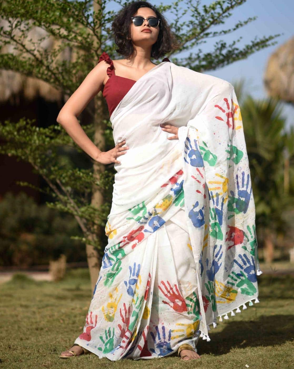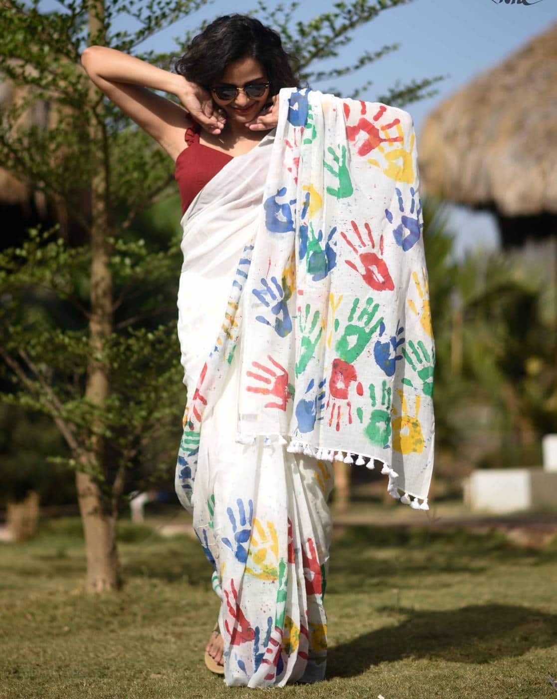 Fabric: Soft Linen With Digital Print. Saree length – 5.50 Meter