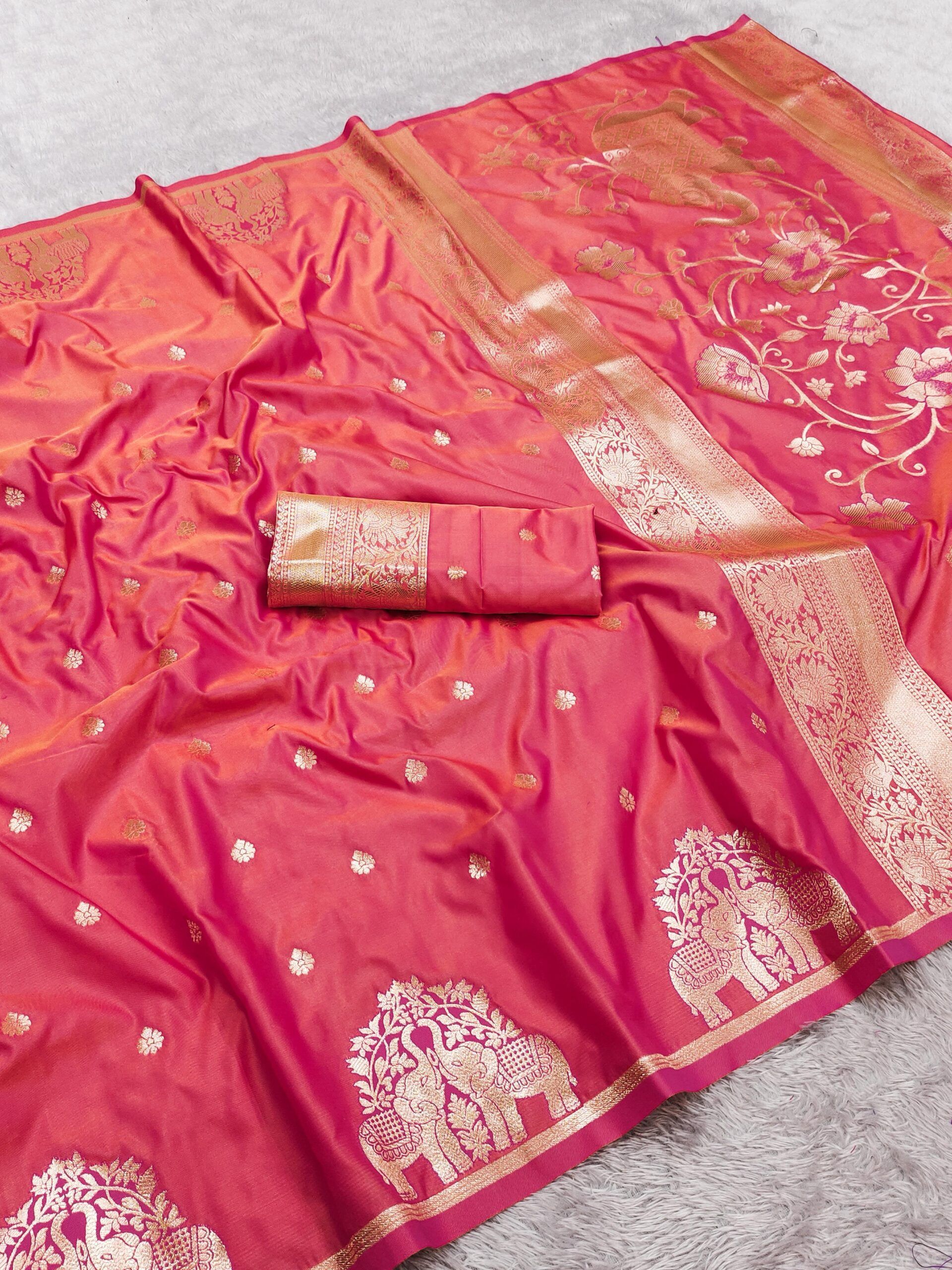 Soft & Pure Banarasi Self Weaving Silk Saree(10 Pc Set)