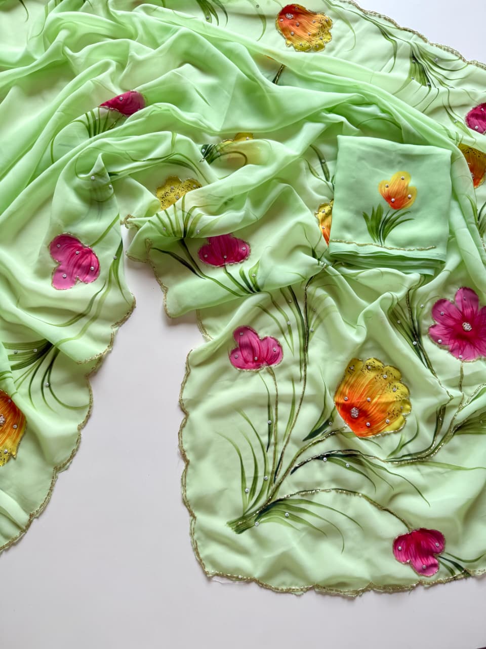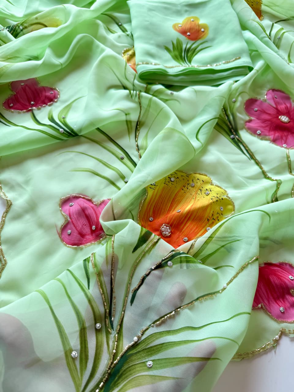Soft Pure Georgette Handwork Saree