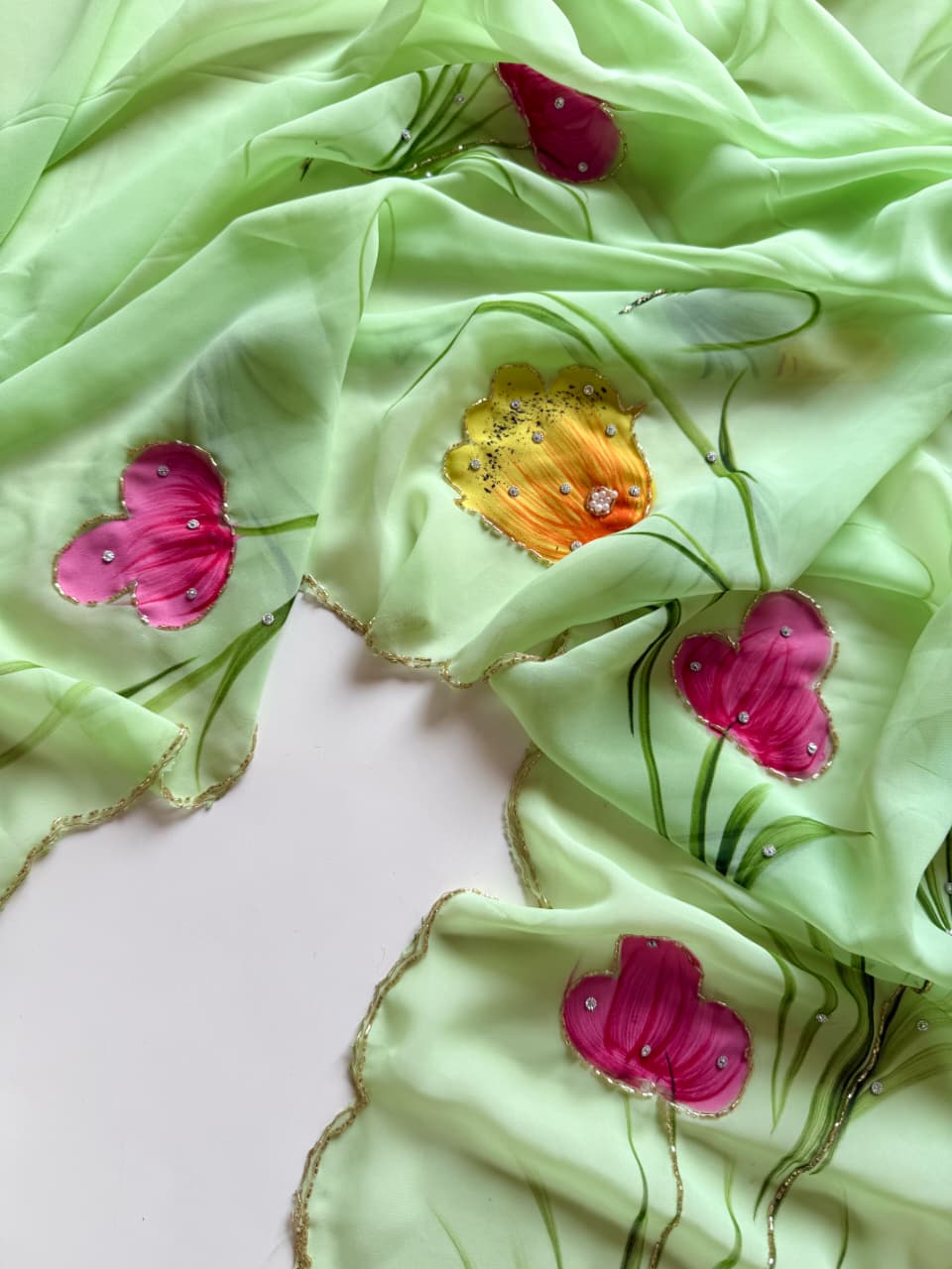 Be the first to review “Soft Pure Georgette Handwork Saree”