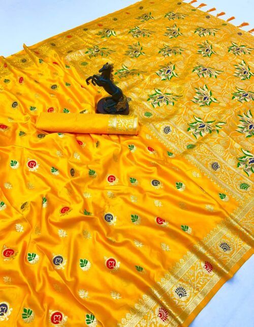 Soft Pure Muga Cotton Meenakari Weaving Saree (6 Pc Set)