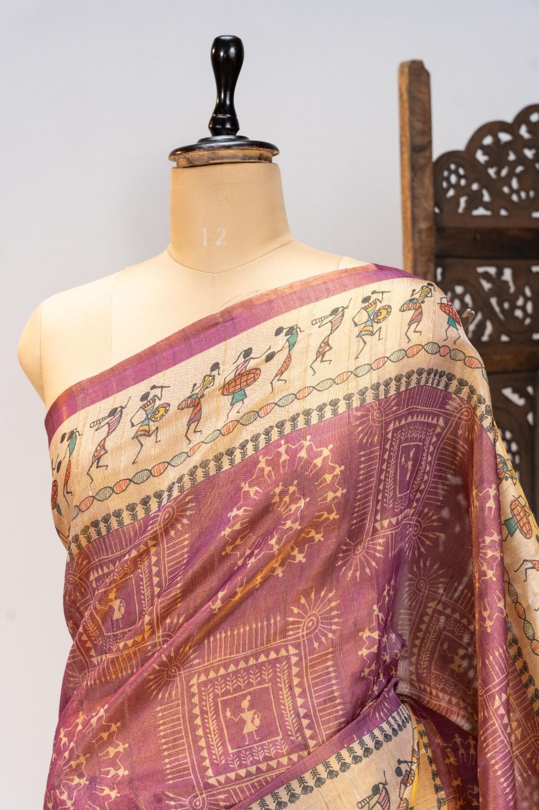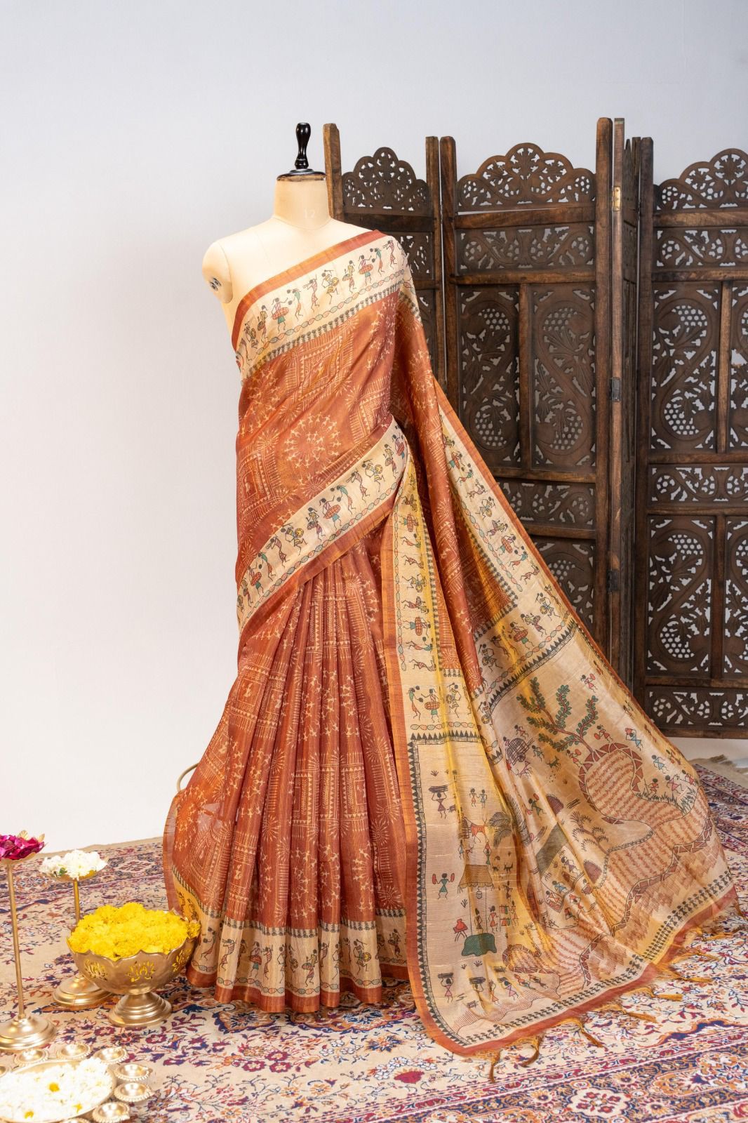 | Fabric: | Premium soft Pure Tissue Tussar silk saree with beautiful warli printed pallu & all over traditional warli print and contrast printed border |