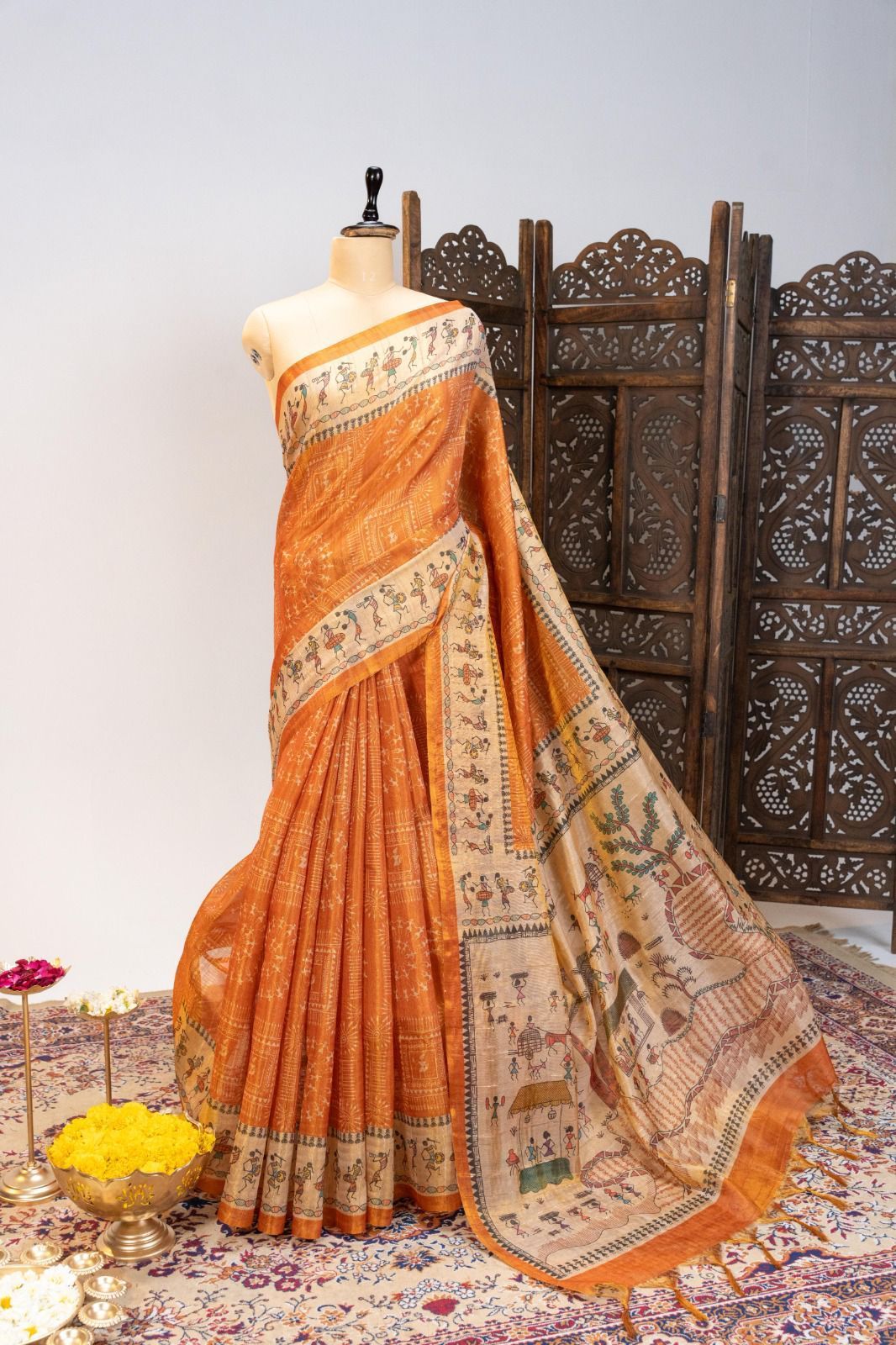 soft Pure Tissue Tussar silk saree with beautiful warli printed Wholesale Price 7 Pc Catalog