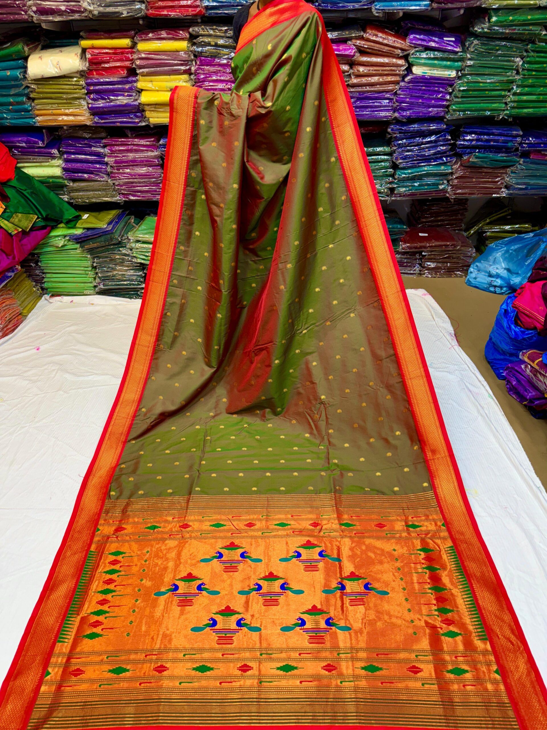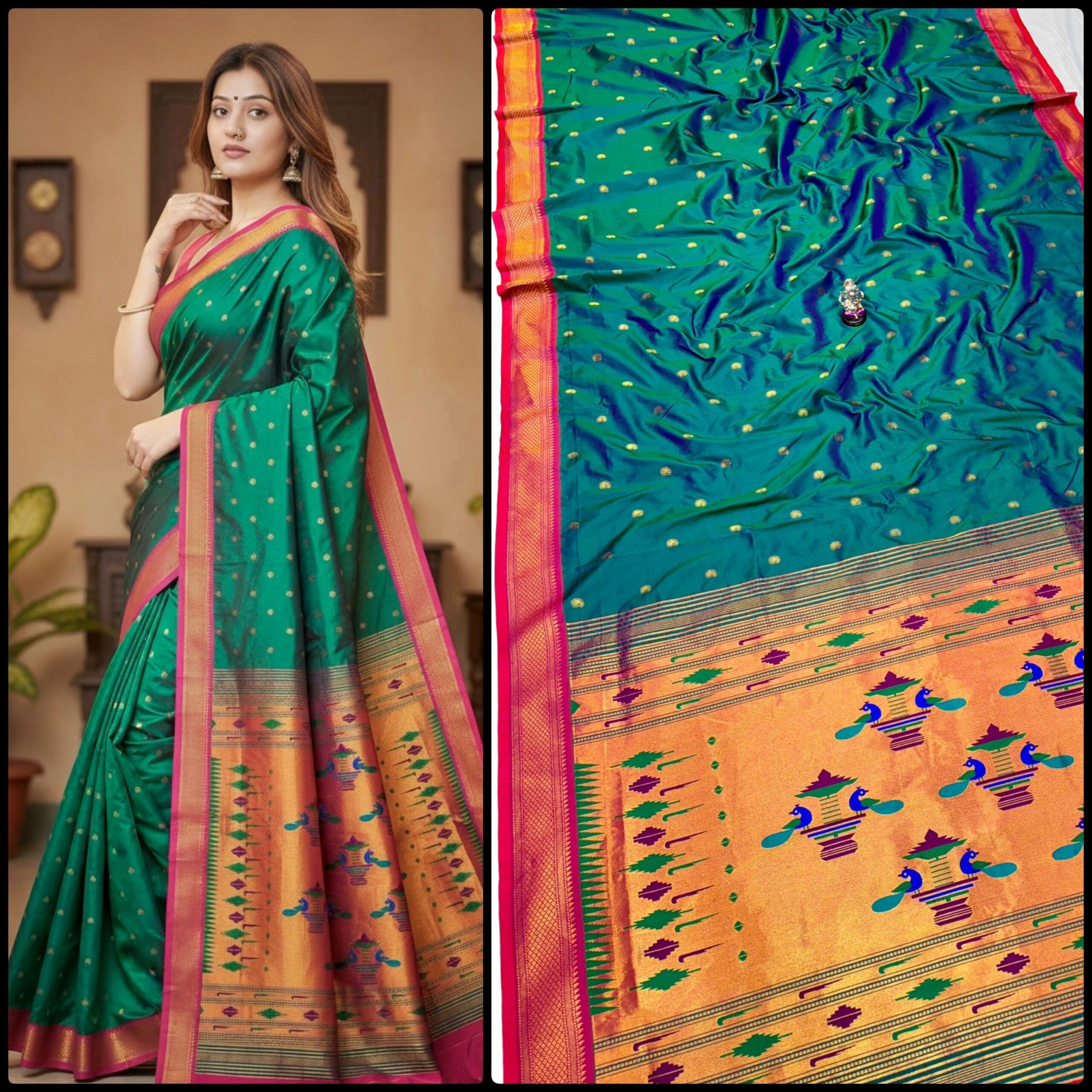 Work: soft Silk With gold jari all over jal and butti and paithani rich pallu Saree