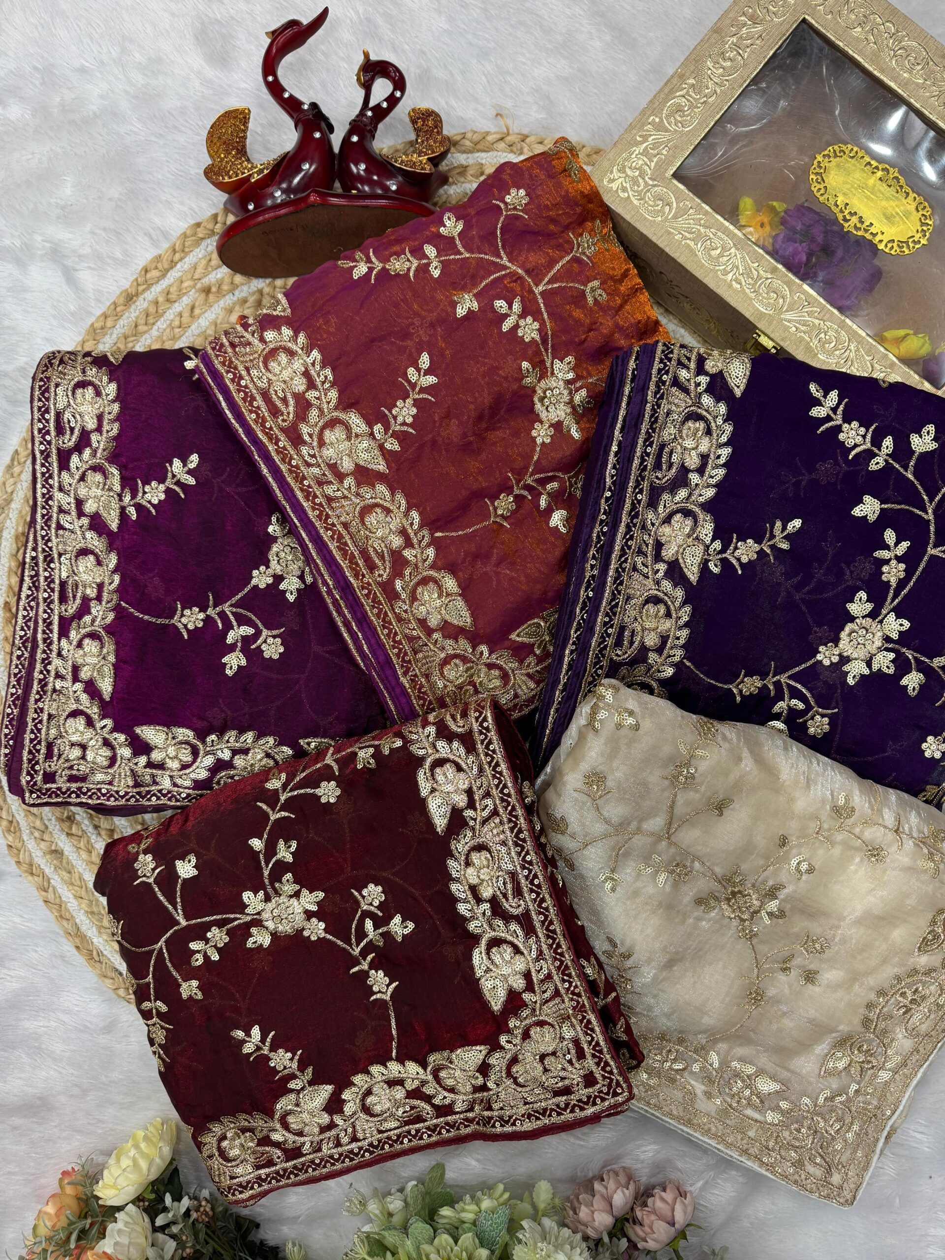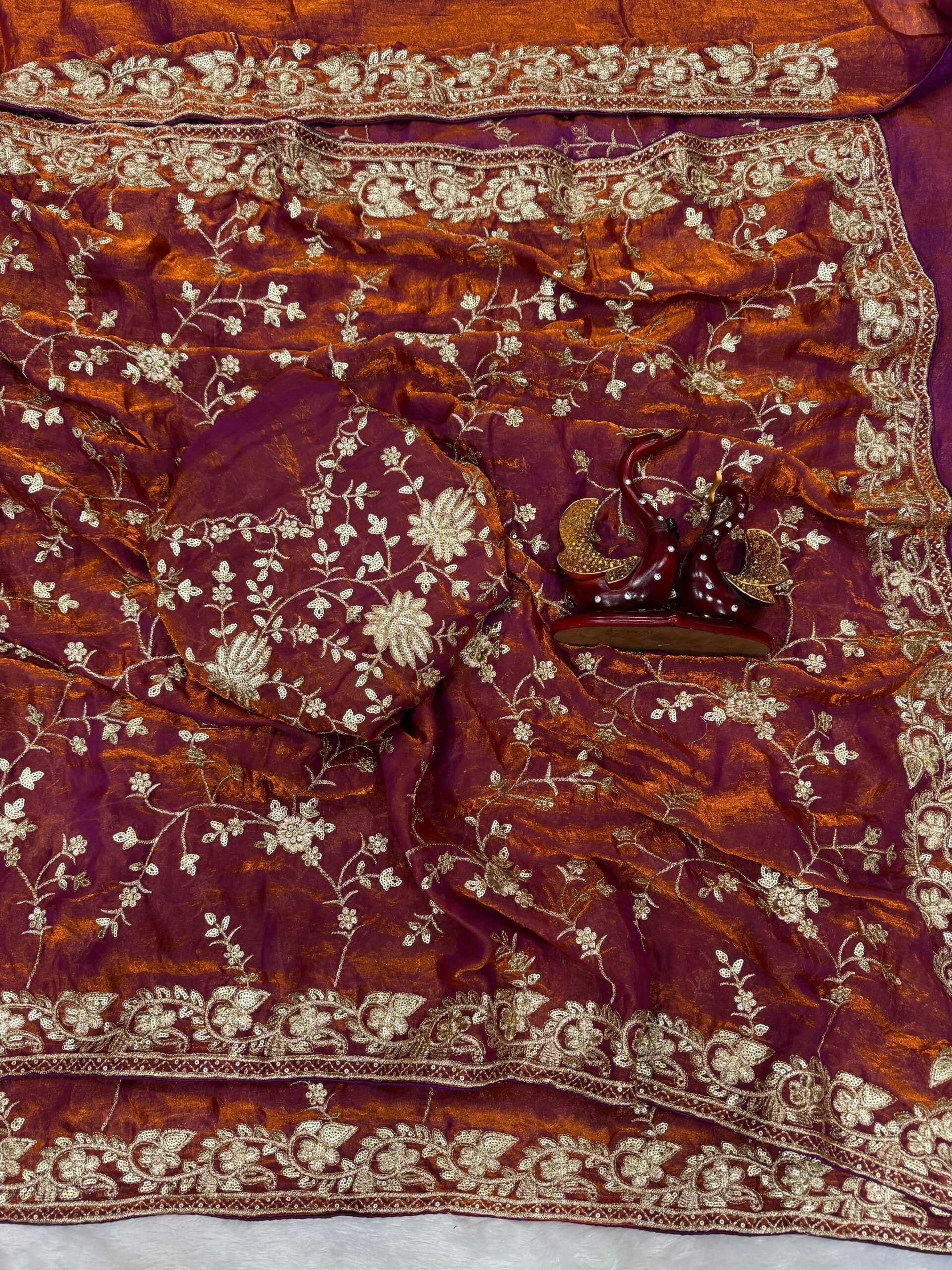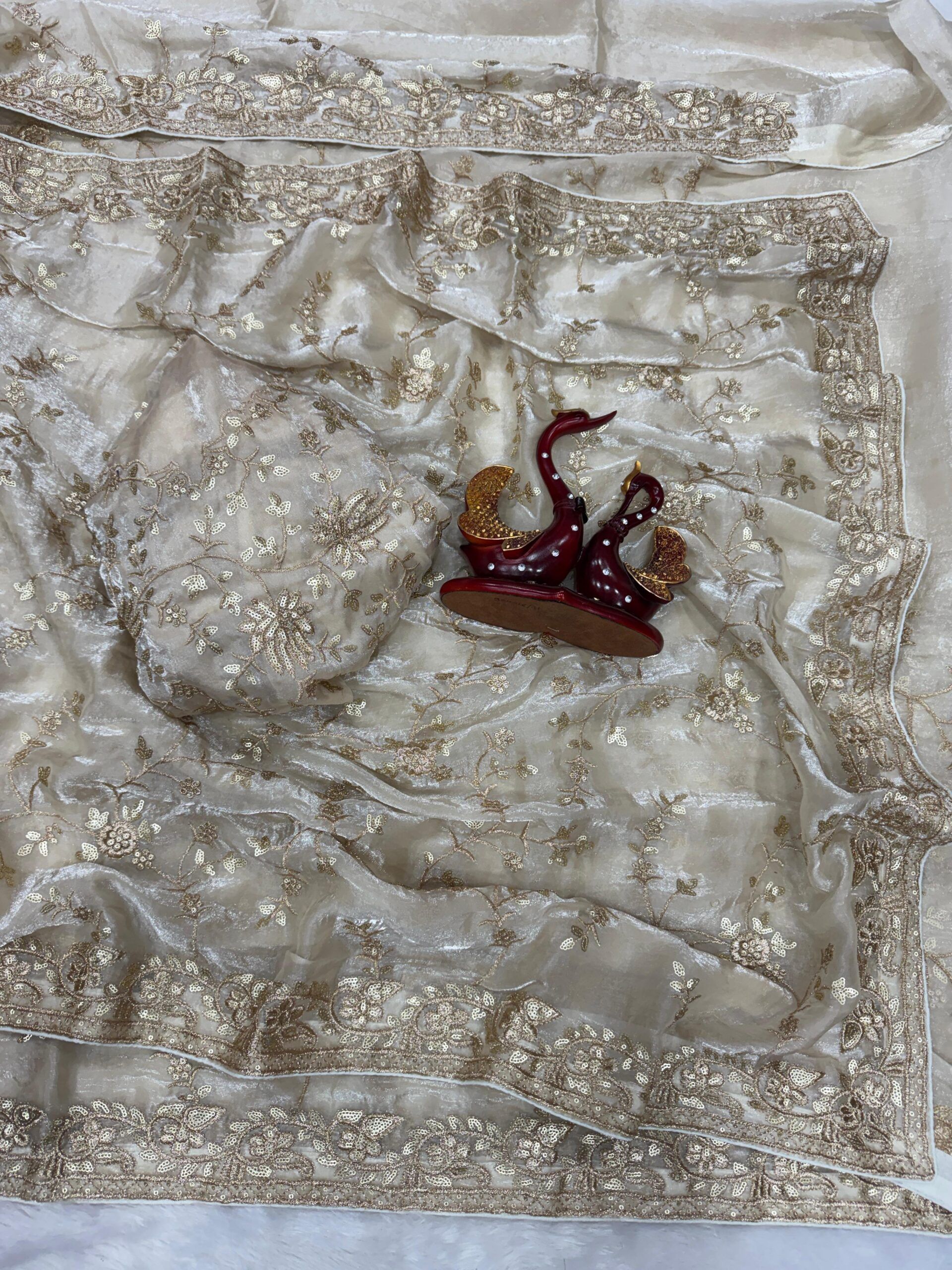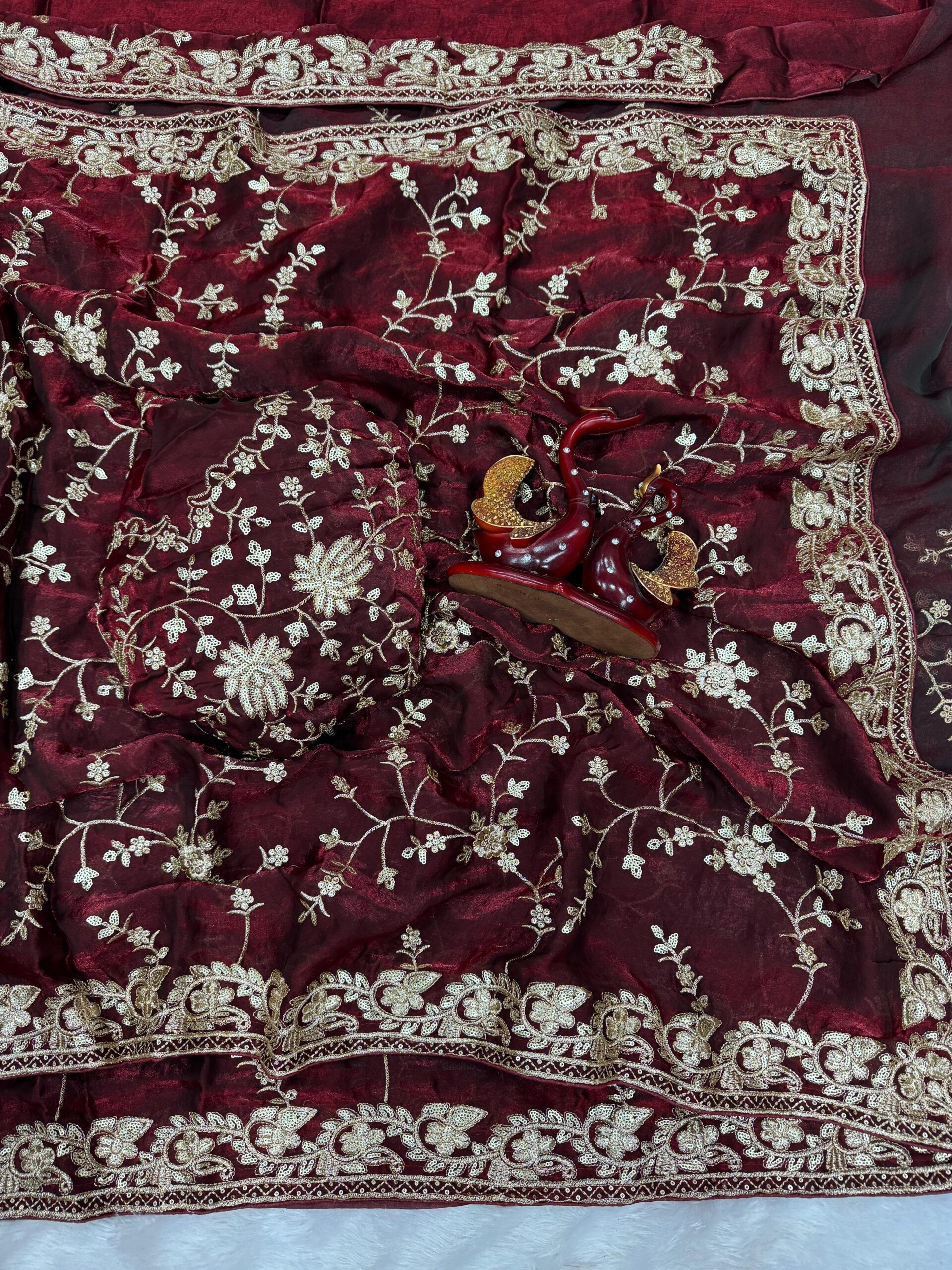 Exuding grace and sophistication, this Sequins work embroidered saree blends classic beauty with modern elegance. Each delicate petal in the design tells a story of timeless charm, making it the perfect choice for those who appreciate both tradition and contemporary style.