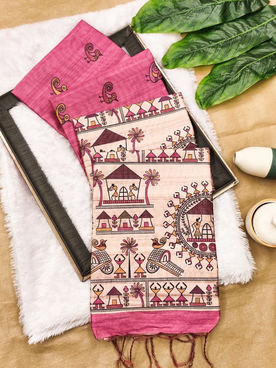 Soft Tussar Silk Madhubani Saree Wholesale Price 6 Pc Catalog