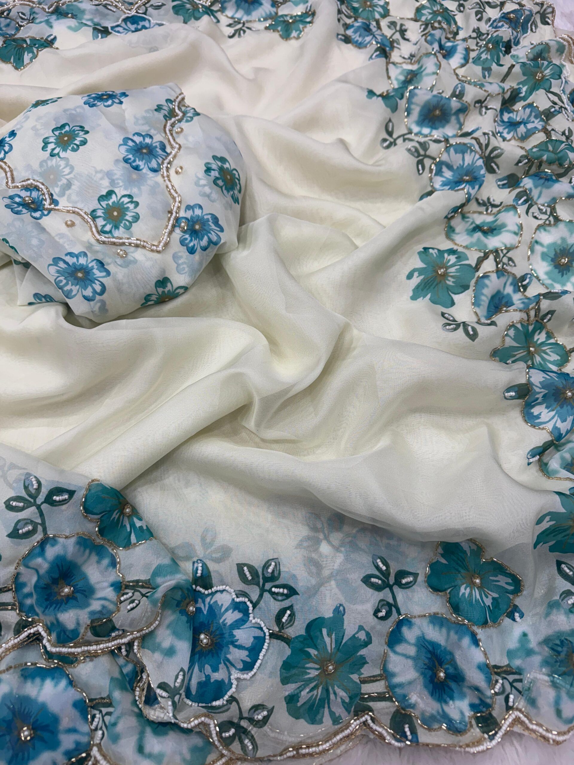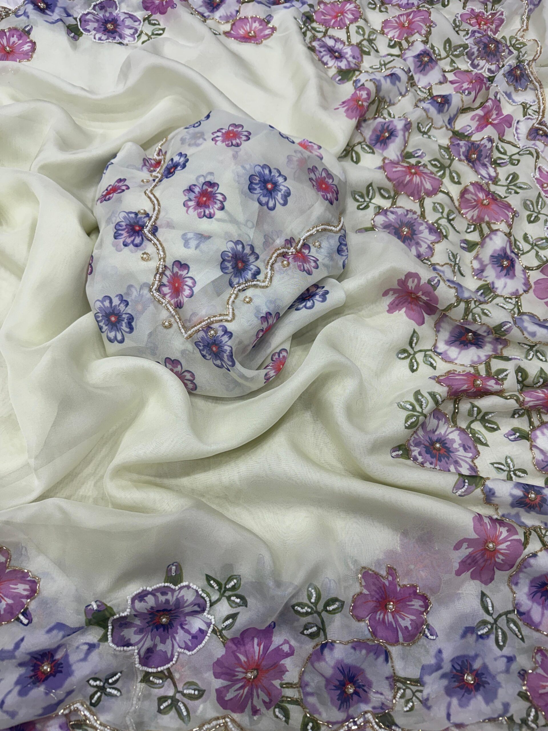Organza is a fabric cultivated from organza silk. It’s one of the most stylish saris, perfect for summer.