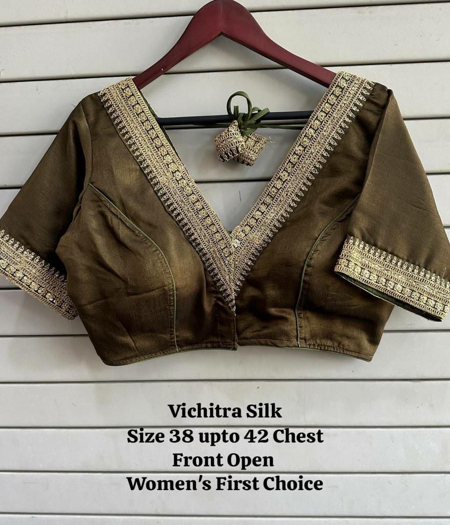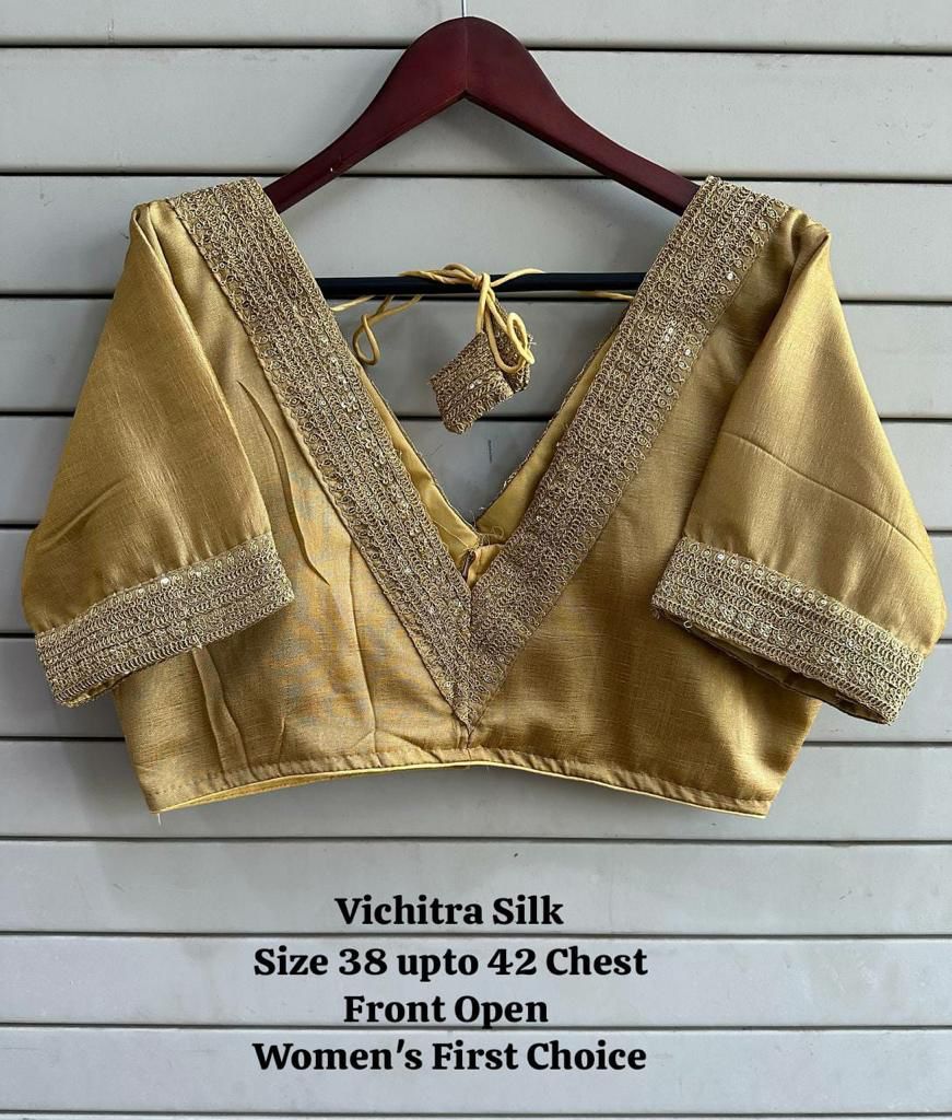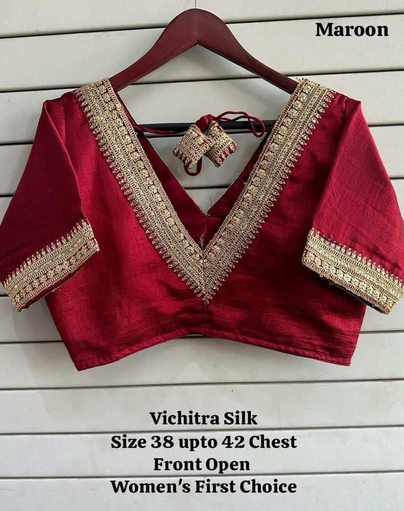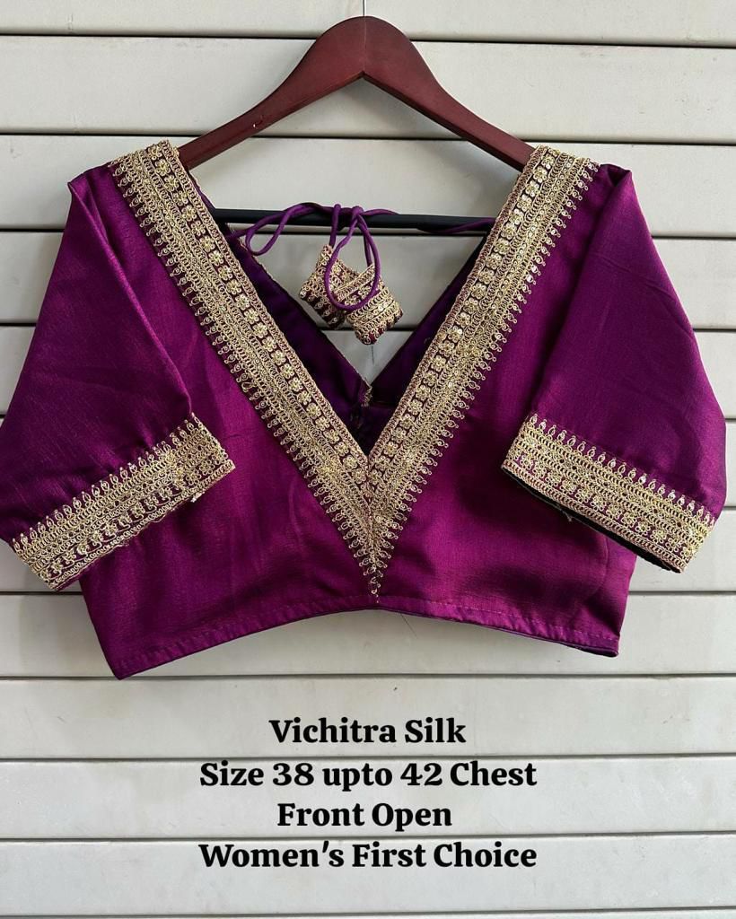 Vichitra Silk Embroidery Coding Sequence Blouse(10 Pc Set)