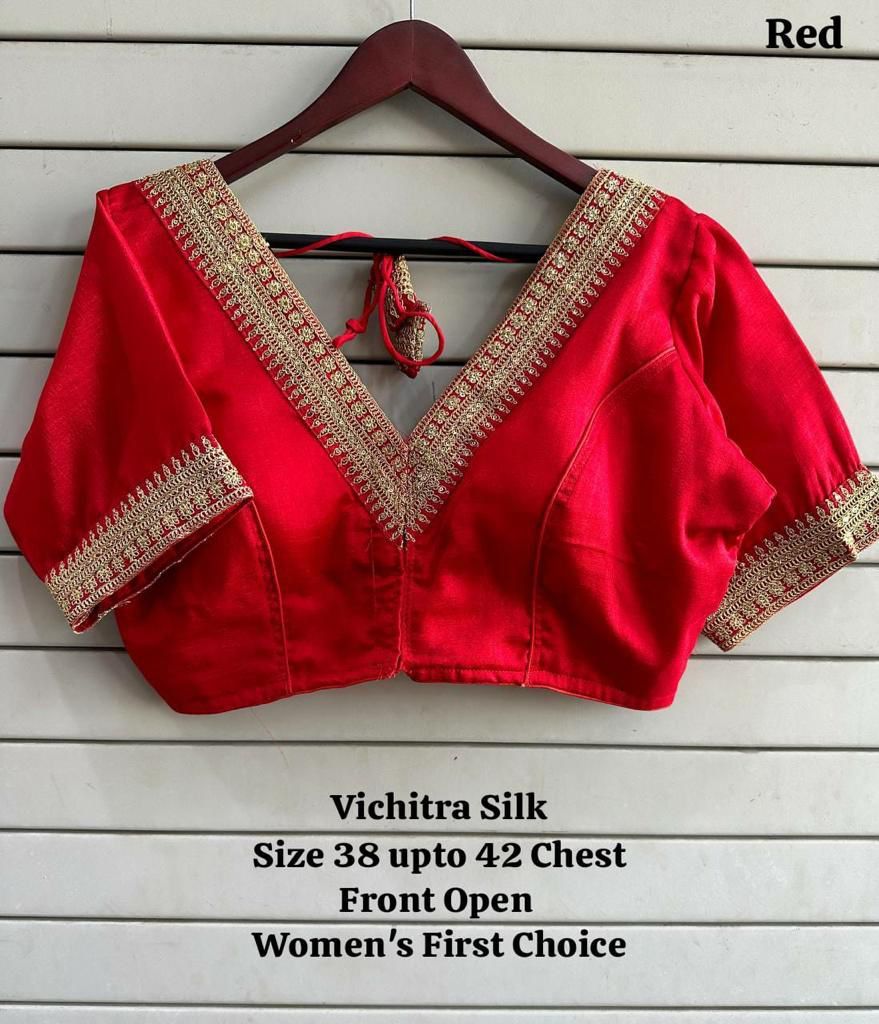 | Other Details | Vichitra Silk Work :- Embroidery Coding n Sequence Lining :- Cotton Pattern :- V Neck Open :- Front With Hook n Back Heavy Latkan Color :- 14 Sleeve :- Elbow Pad :- Yes |