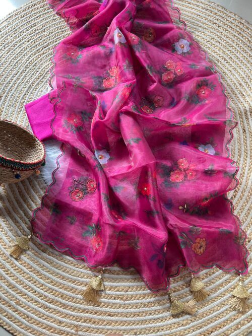Premium Tussar Silk Saree With Beautiful Cutwork border (7 Pc Set)